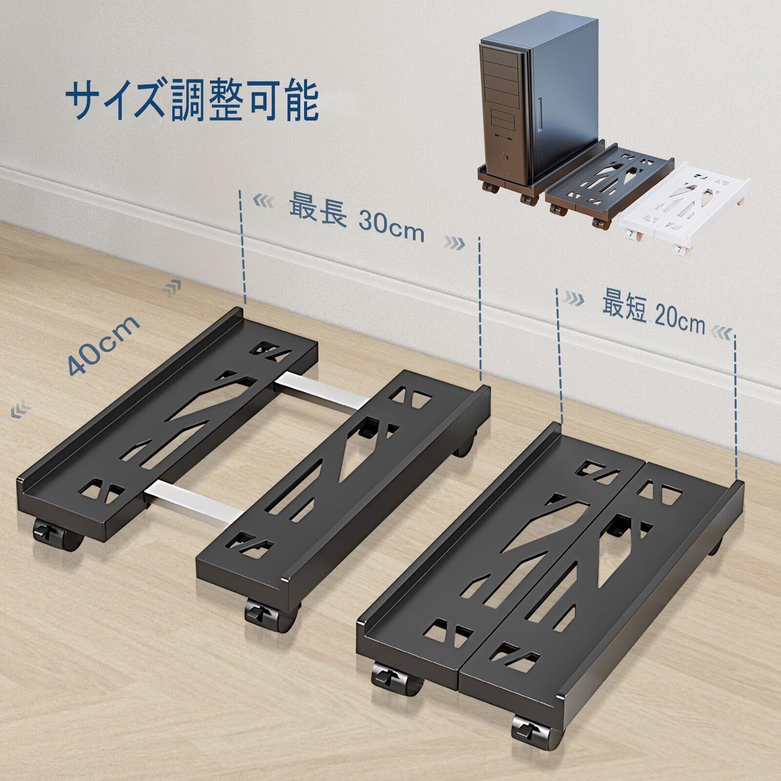 BESSTER CPUスタンド キャスター付き台車 PCワゴン デスト下PCスタンド PCカート サイズ調整可能CPUホルダー パソコンサーバーラック スクトップ用 落下防止 移動便利 多用途 熱対策 足元収納 オフィス・自宅・会社用 サイズ40cm*22cm-30cm*9cm 黒