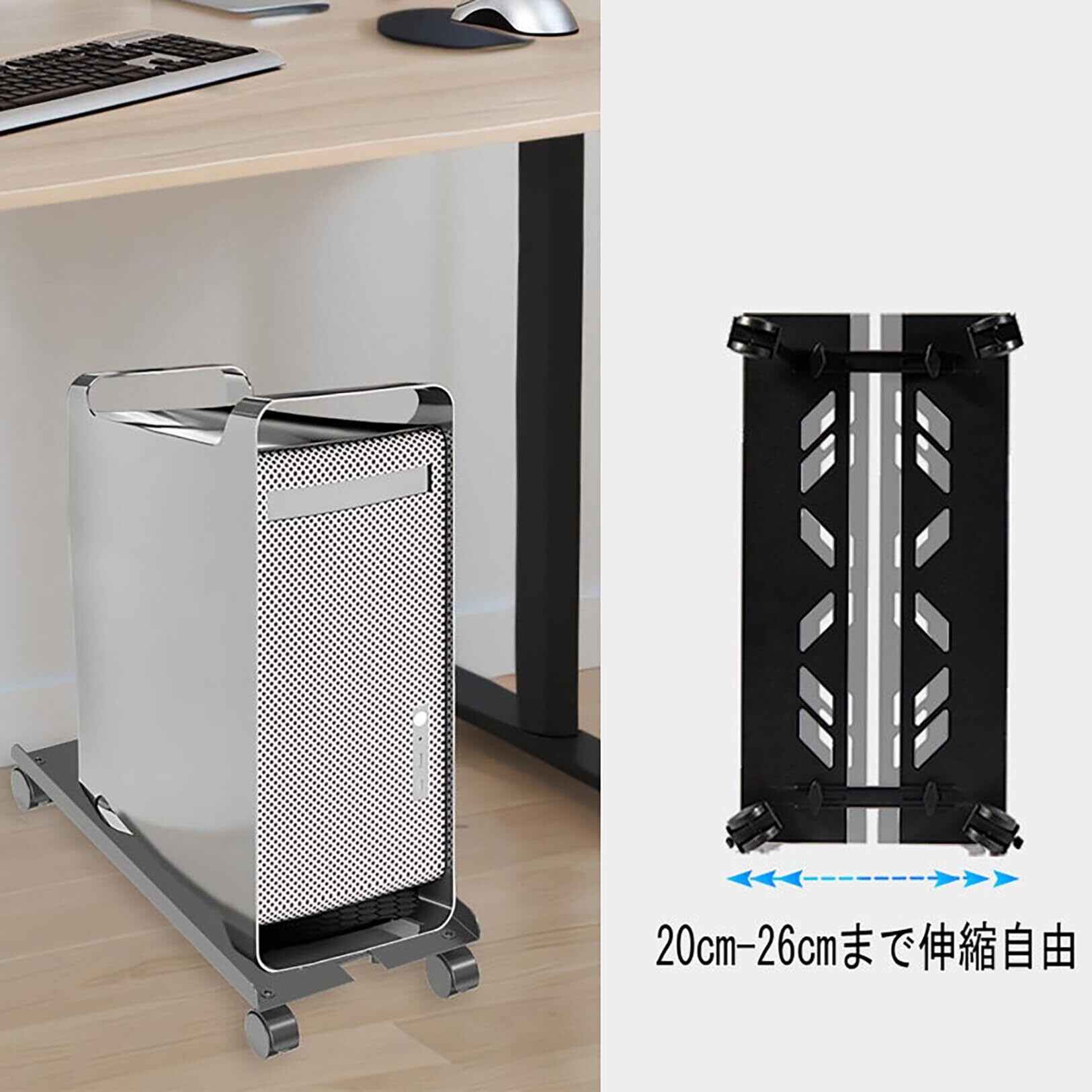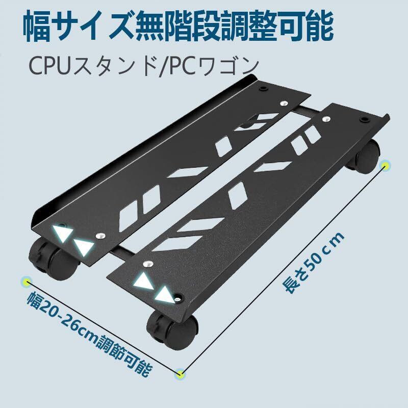 BESSTER CPUスタンド PCワゴン キャスター付き台車 デスト下 PCスタンド PCカート 幅サイズ調整可能 落下防止 移動便利 デスクトップ用CPUホルダー パソコンサーバーラック 足元収納 静電防止塗装 オフィス・自宅・会社用 サイズ50cm*20-26cm ブラック黒 (幅調整可能)