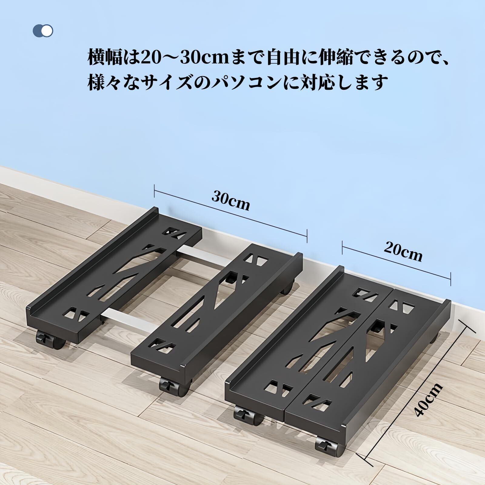 【幅調整ができる】幅調整範囲は20~30cmで、さまざまなサイズのパソコン本体に適用できます。