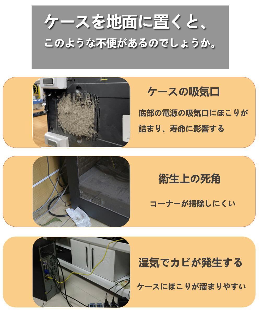 【大切なPCを守る】メインフレームを地面から持ち上げて、 湿気やホコリの侵入を防ぎ、PCへのダメージを軽減。 また空気が流れる空間を確保することで、 PCの冷却効率をアップさせることができます。