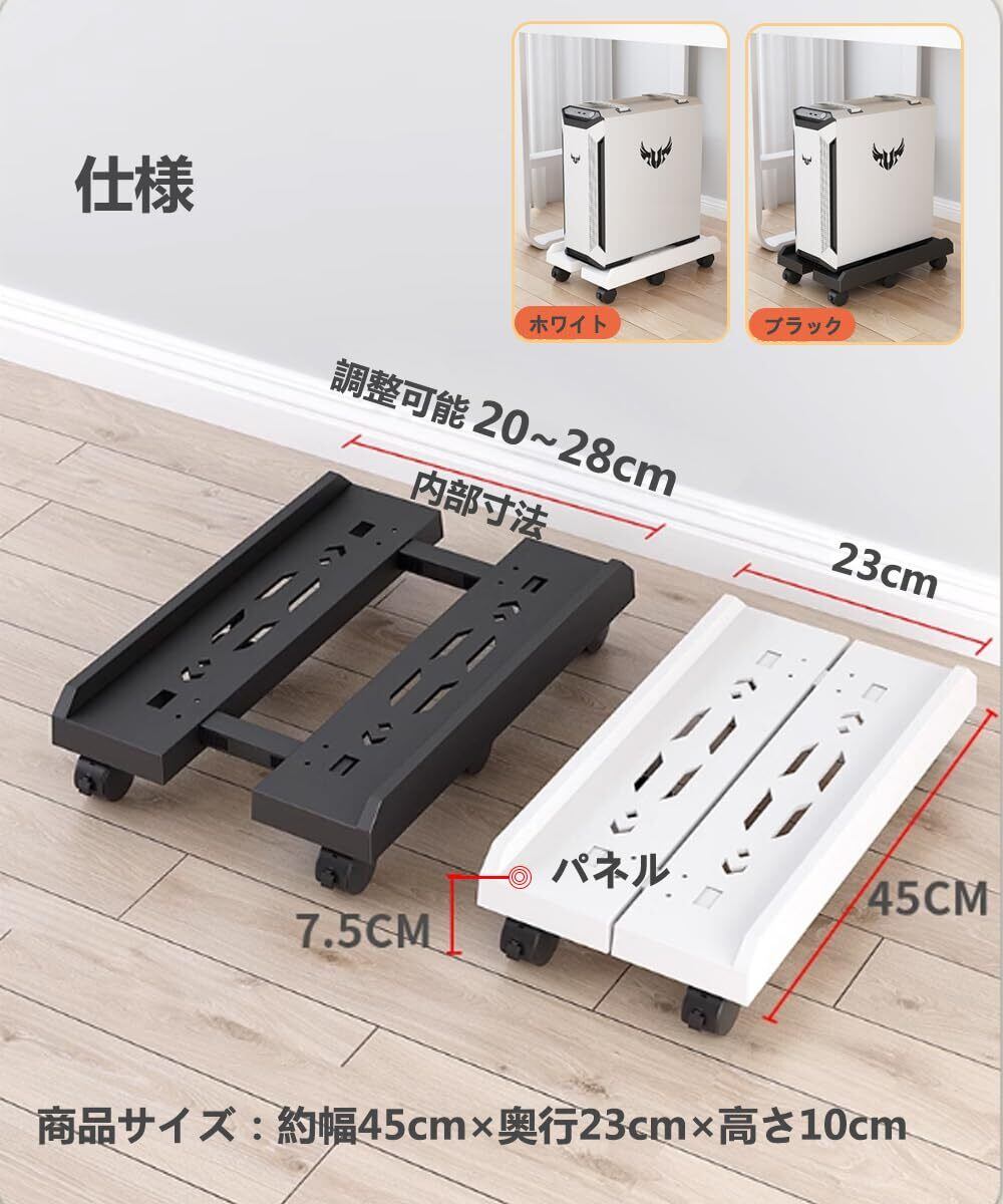 【特価セール】ZENG YUAN CPUスタンド キャスター付 パソコン CPUワゴン デスクトップ用 ほこり対策 カーペット 内寸幅20~ 28cm無段階調節 ゲーミングPC 耐荷重:40kg パソコンスタンド (ホワイト) | SmartLiving+
