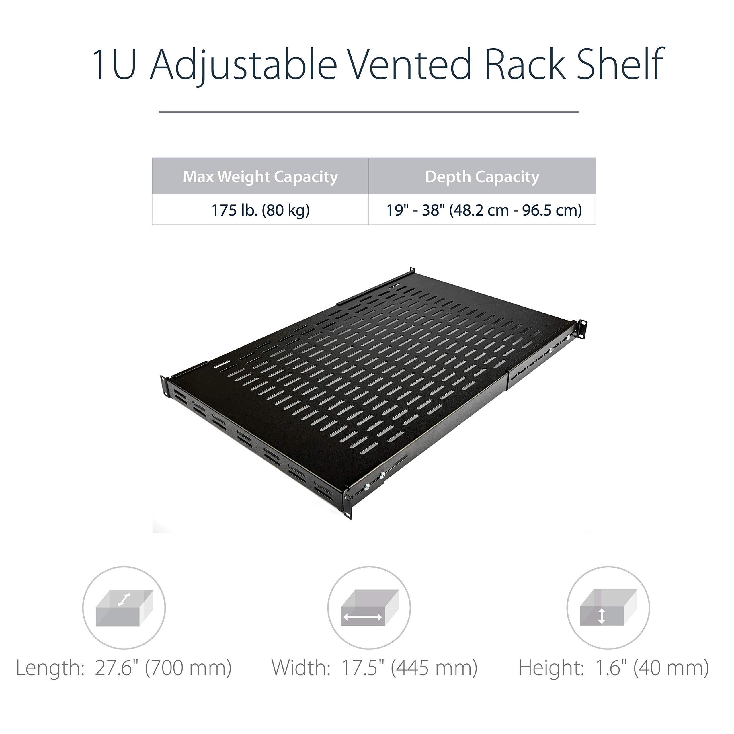 StarTech.com 1U 放熱スリット付きサーバーラック棚板 伸縮式ラック収納棚 耐荷重80kg ADJSHELF