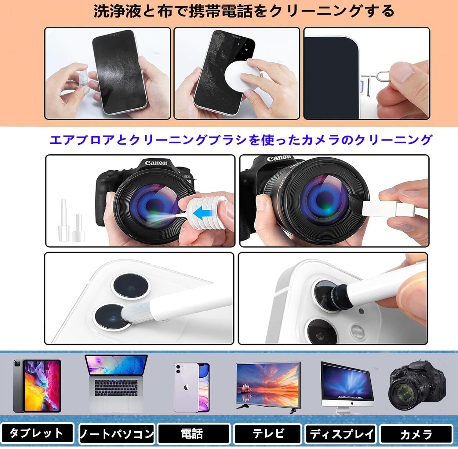 【幅広い用途】イヤホン 掃除キットは、AirPods / Air Pods Pro / Freebudsなどすべてのワイヤレスイヤホン、airpods充電器キット、airpodsケース、電話スクリーン、カメラレンズ、コンピューター、ヘッドフォン、イヤフォン、携帯電話、キーボード、macbook、充電ポートなどのデジタル製品の掃除に適用します。すべての有線イヤホン、ワイヤレスイヤホン、bluetoothイヤホン、 充電ケース、スマホ、タブレット、コンピューター、カメラなど製品に適合します。