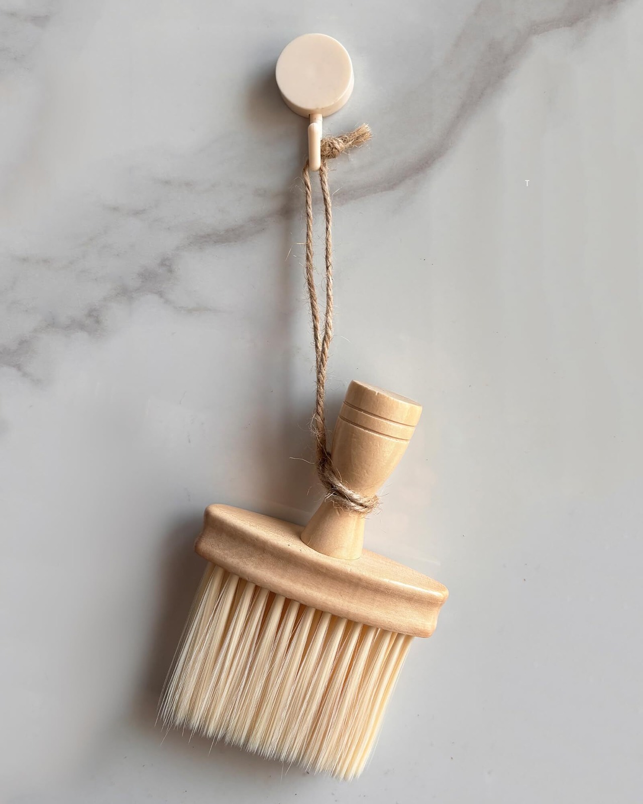 【クリーニングブラシ パッケージ内容】木製ハンドル+化学繊維ブラシ(粘着式プラスチックフック2個とストラップ2本付)。木製クリーニングブラシは使用後水洗いができ、掃除が簡単。