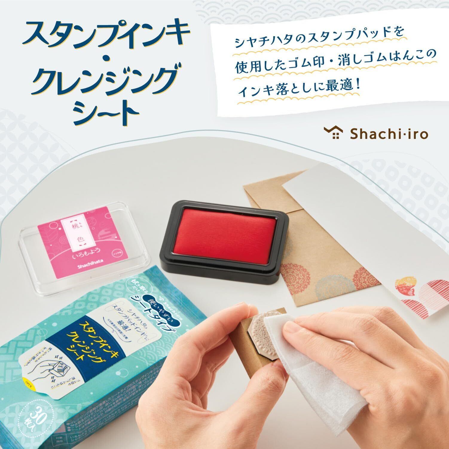 【特長】クレンジング溶剤が浸透した、使いやすいシートタイプのスタンプインキクリーナー。