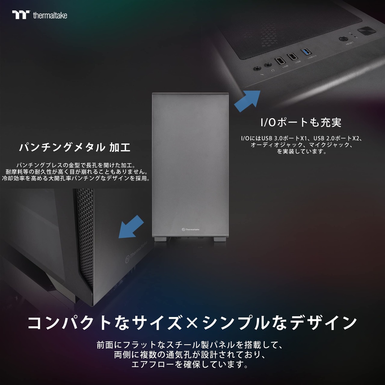 Thermaltake S100 TG 強化ガラス ミニタワーPCケース スイングドアパネル採用 CA-1Q9-00S1WN-00 CS7885 ブラック