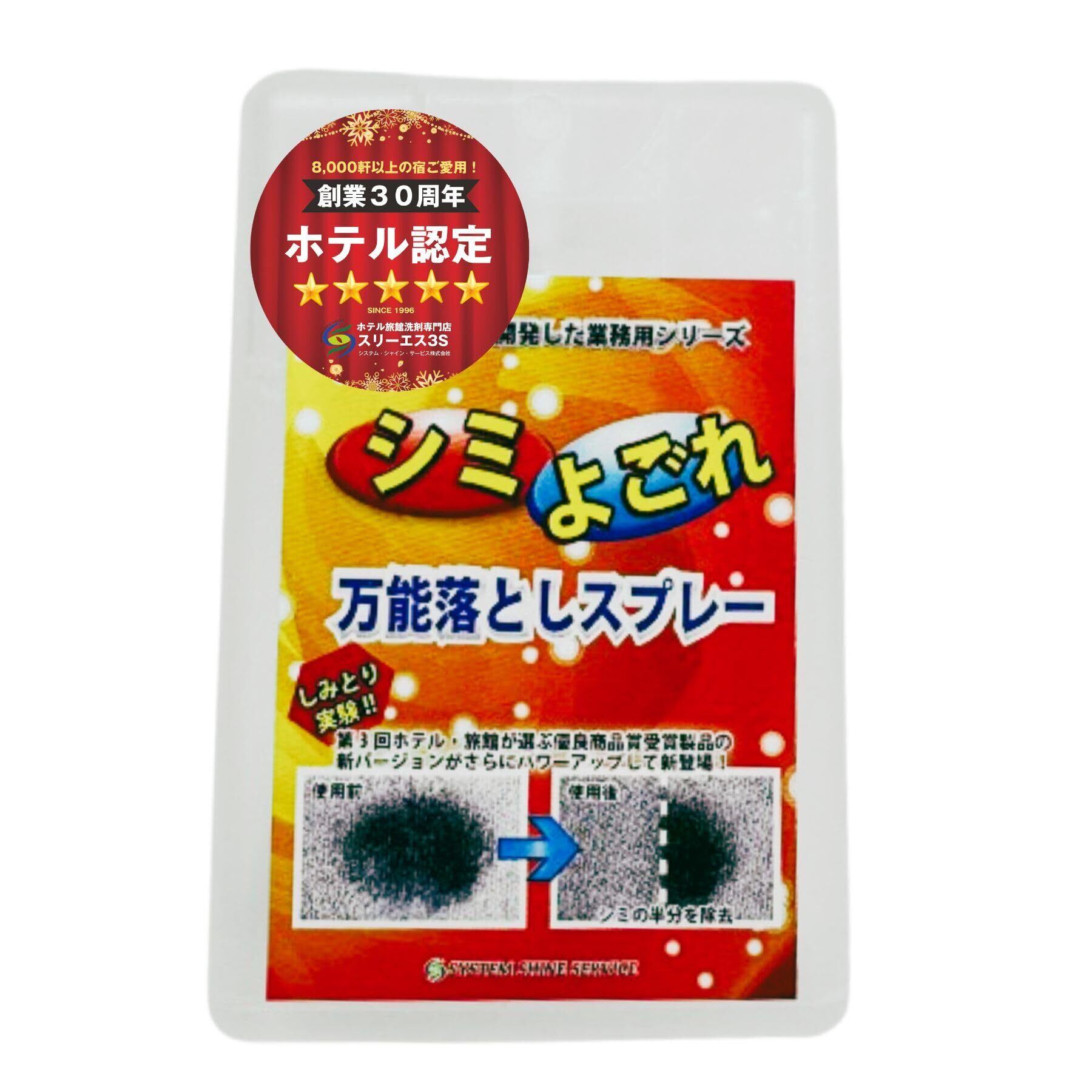 【テレビ『有吉ゼミ』で紹介されました!】 天然素材100% 汚れ落とし 絨毯 カーペット 万能シミよごれ落としクリーナー3S お部屋 ソファー マット キッチン トイレ 車内清掃などに (ホテル業界で30年の実績!宿泊施設で実際に使用されている) 強力 シミ消し シミ取り 染み抜き 洗剤 スプレー (業務用) 日本製 (20mL)