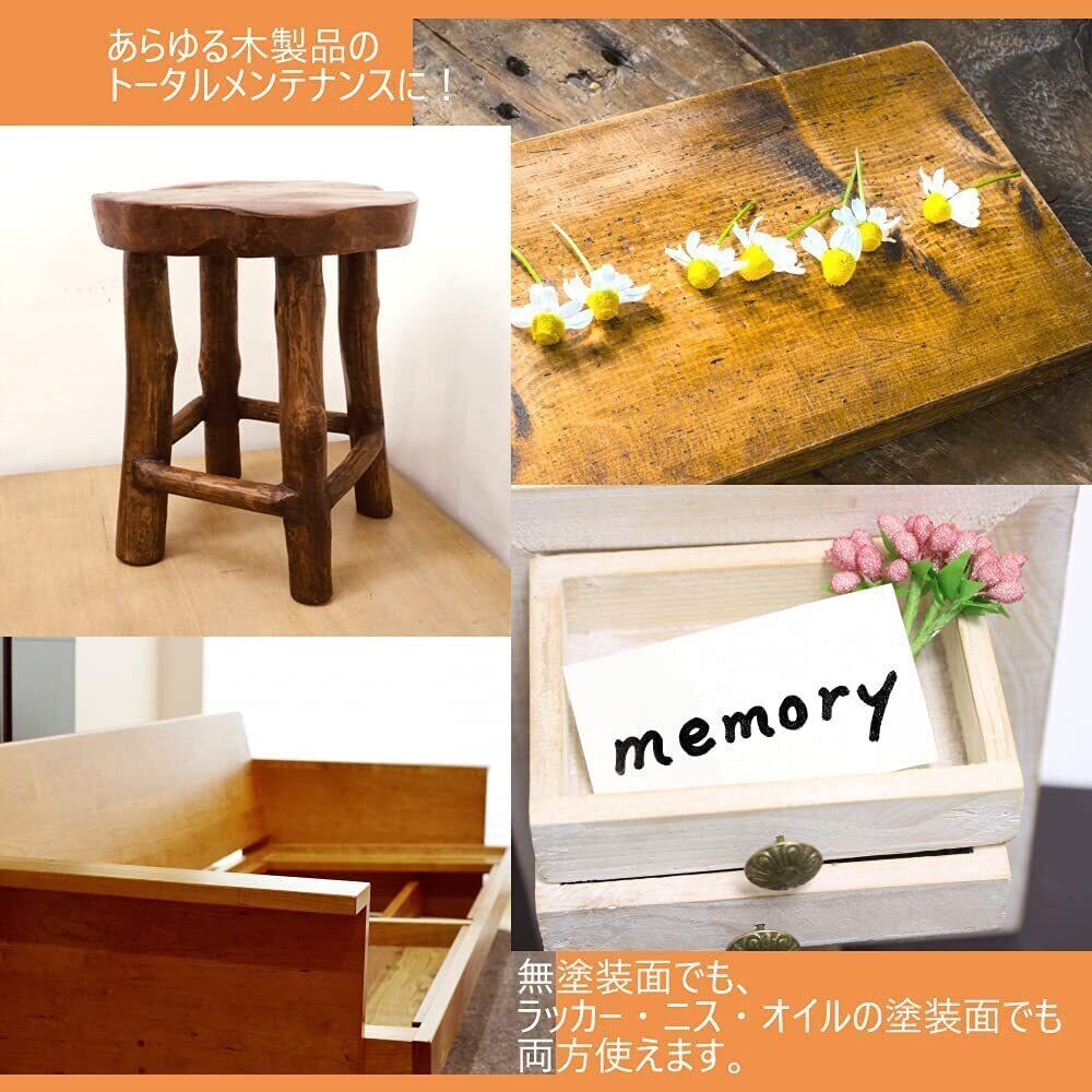 木製家具のメンテンナンスはこれ1本で。 無垢製品、塗装製品の両方ともご使用いただけます。 ムラ、シミを防ぐため、薄く均一にムラ無く塗り延ばしてください。 一気に大量に使わず、少量ずつご使用ください。