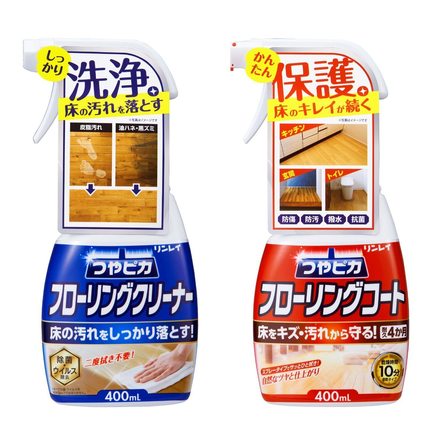 ●「つやピカフローリングクリーナー」:フローリングの汚れをしっかりキレイ。落ちない汚れから見えない汚れまでスッキリ。●「つやピカフローリングコート」:お掃除のあとにスプレーしてひと拭き。床につくキズや汚れをカンタン保護。