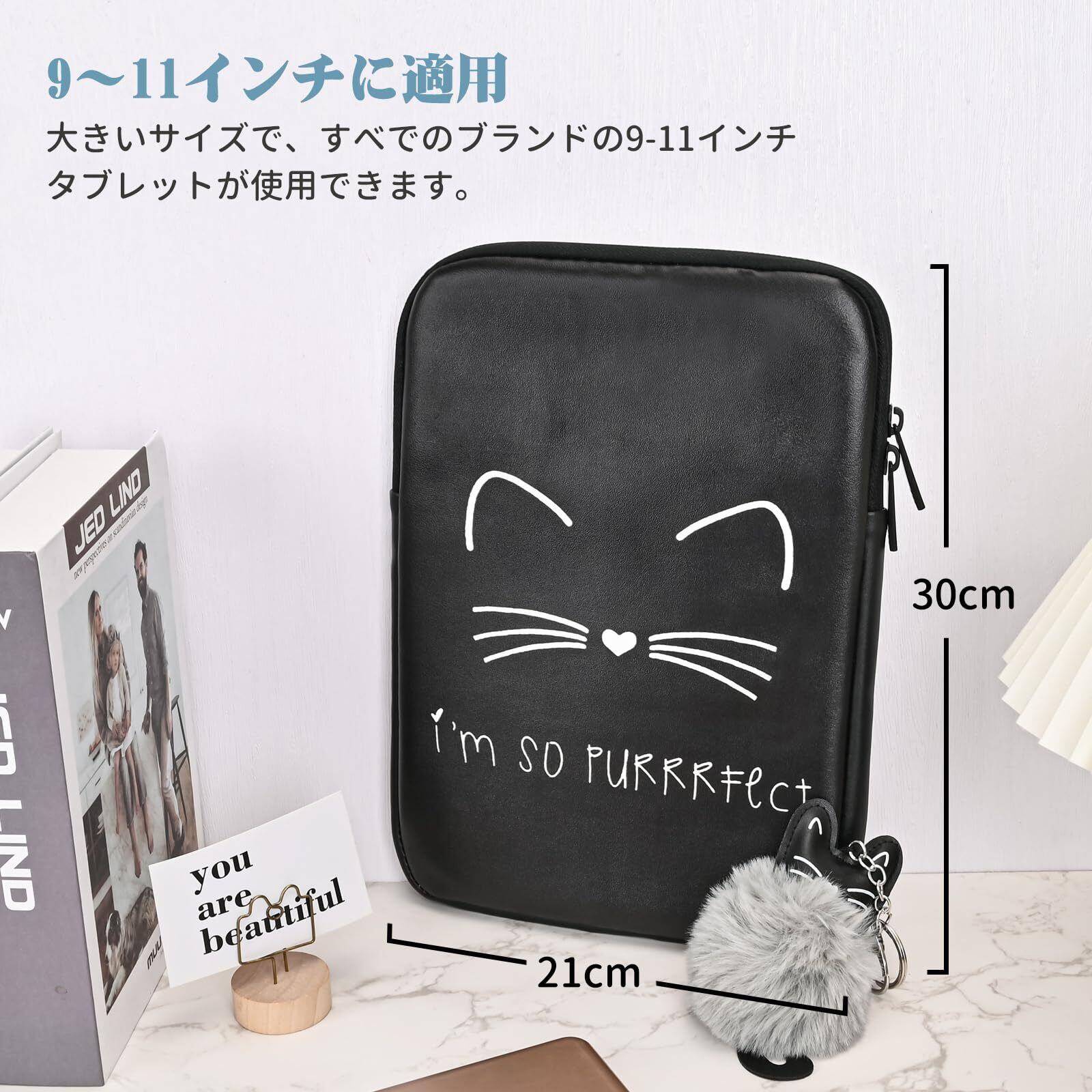 【9-11インチのデバイスに対応】サイズ :21*30*2cm iPad mini 6、iPad 10.2 2021/2020/2019、 iPad Air5 2022 / iPad Air4 2020、iPad Pro 11 2021/2020/2018、iPad Air 10.5 2019、iPad 9.7 2018/2017、Galaxy Tab A 10.1 2019、Surface Go 2018、ファーウェイ Mediapad T5 10、 ファーウェイ M5 Pro、chromebook ideapad duet 10.1とその他の9~11インチのノート・タブレットPC/電子書籍リーダーに適用します。注意:キーホルダーはバッグの中に入れておりますので、到着後バッグを開けてご確認ください。