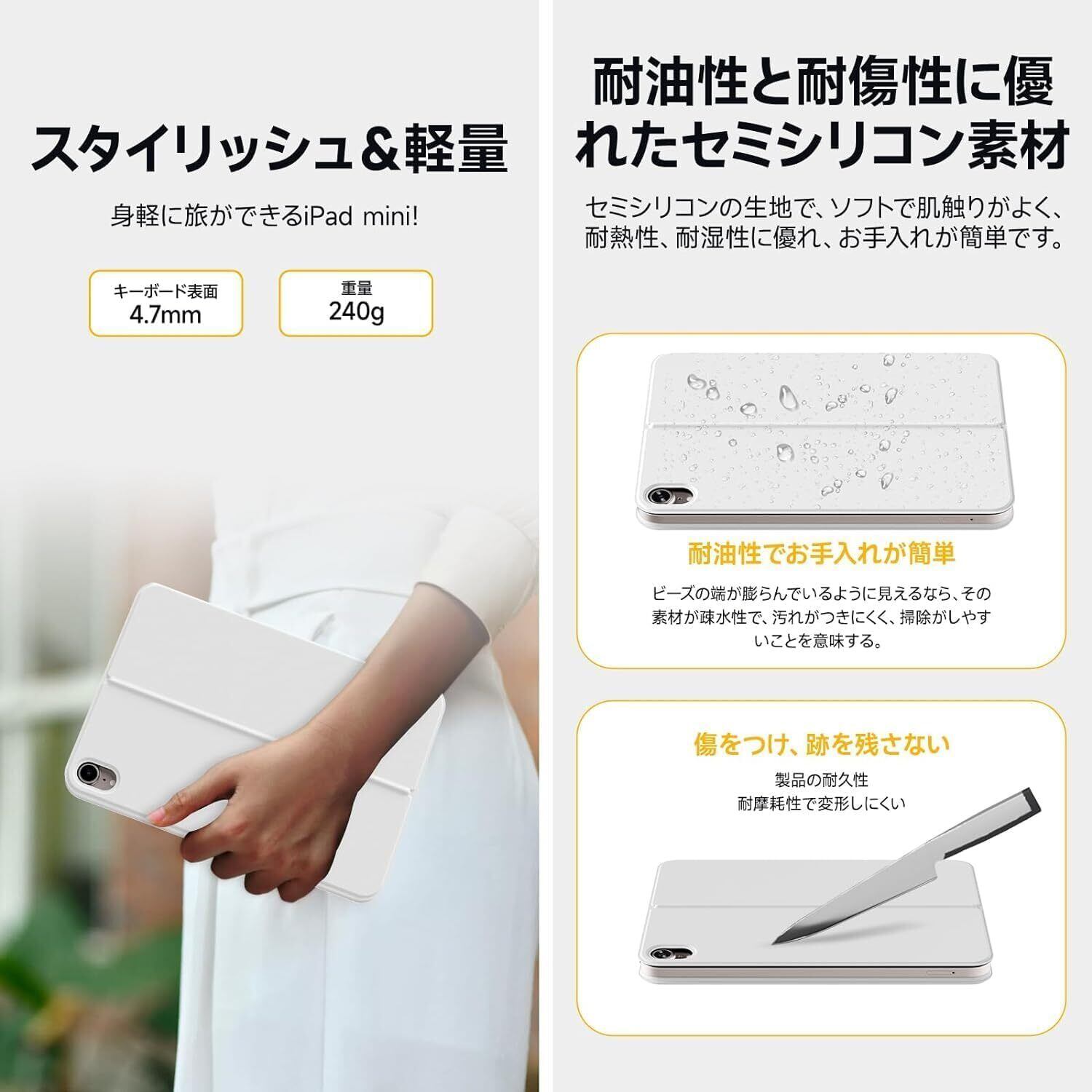 【業界超薄・軽量】HOU 対応 iPad mini 6/7(A17 Pro)キーボード付きケース、0-180°角度調整、マグネット充電、残量表示、傷や摩耗に強いセミシリコンPU生地、開口部なし設計、【英语配列】