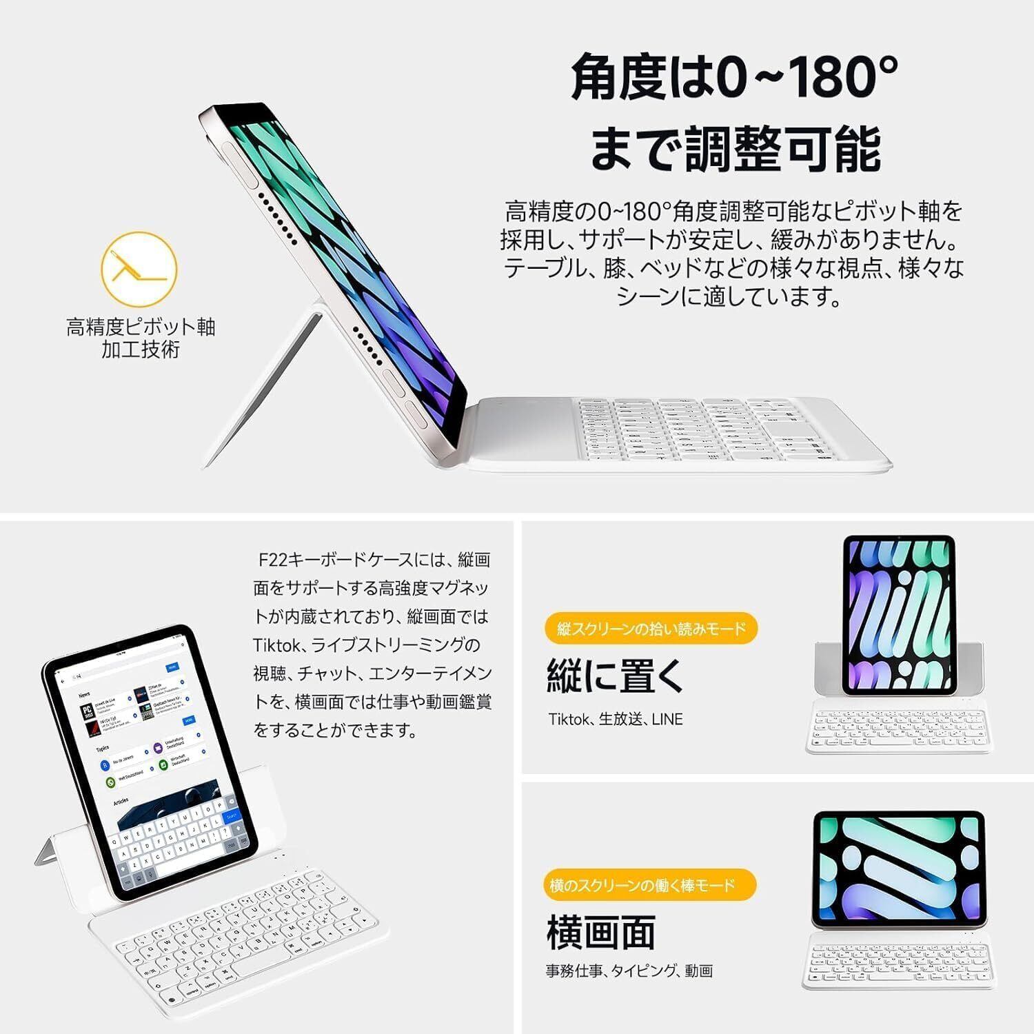 【新着商品】【業界超薄・軽量】HOU 対応 iPad mini 6/7(A17 Pro)キーボード付きケース、0-180°角度調整、マグネット充電、残量表示、傷や摩耗に強いセミシリコンPU生地、開口部なし設計、【英语配列】 | SmartLiving+