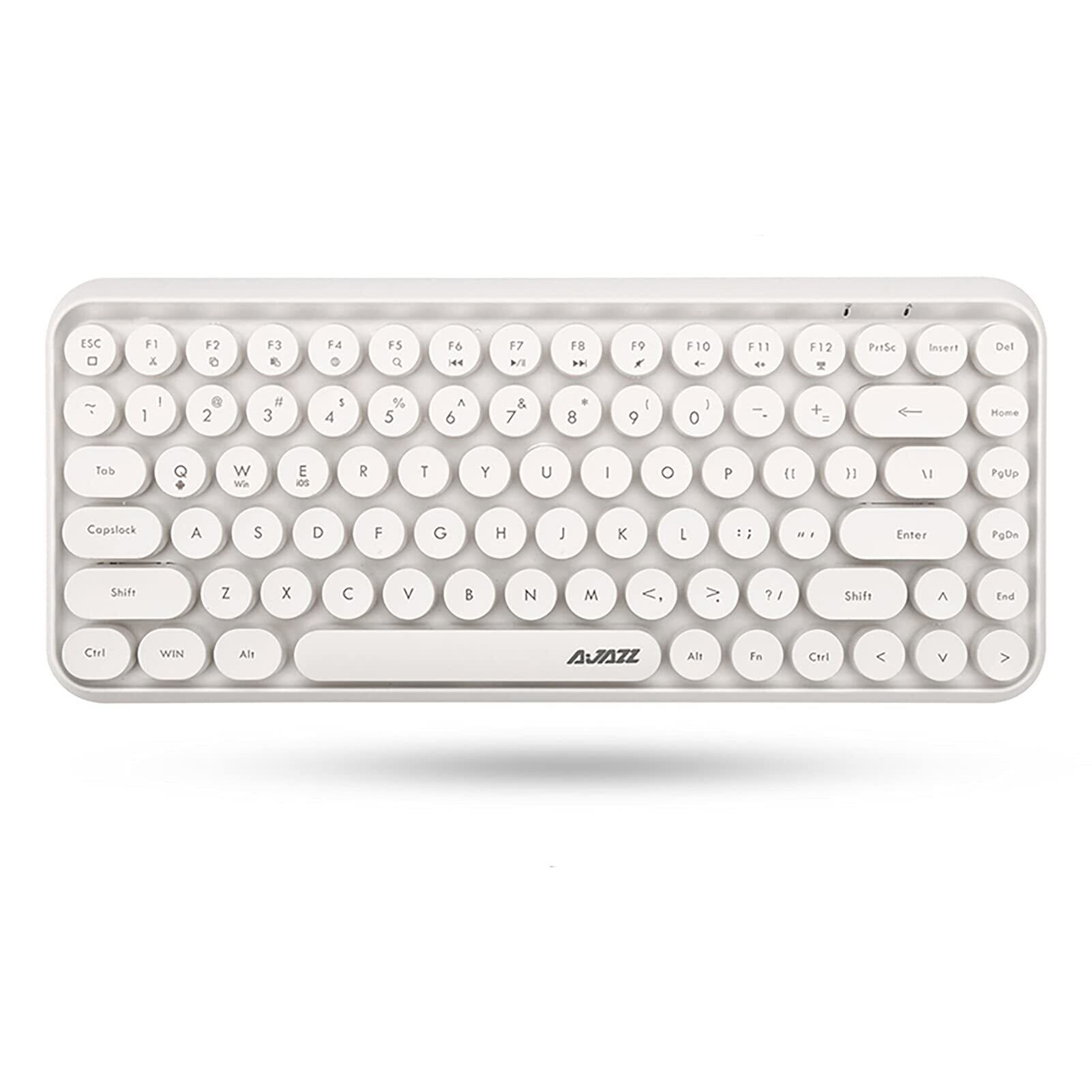 Ajazz 308i ブルートゥース タブレット用キーボード レディース ワイヤレス コンパクト Bluetooth キーボード かわいい タイプライター風 英語配列 (ホワイト)