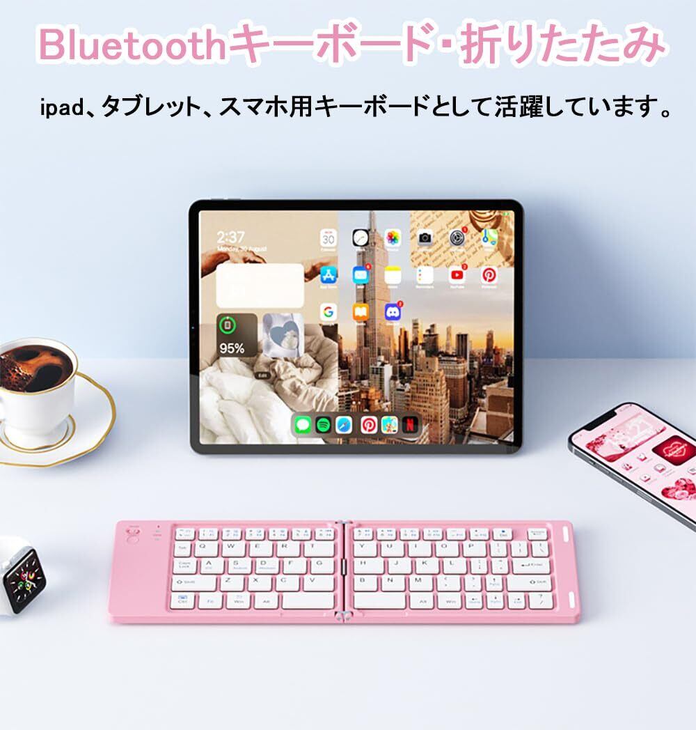 折りたたみキーボード Bluetooth 超軽量 Type-C充電式 折り畳み式 ワイヤレス ブルートゥース ipad タブレット スマホ用 コンパクト 小型 携帯便利 英語配列 Windows iOS Android対応(ピンク)