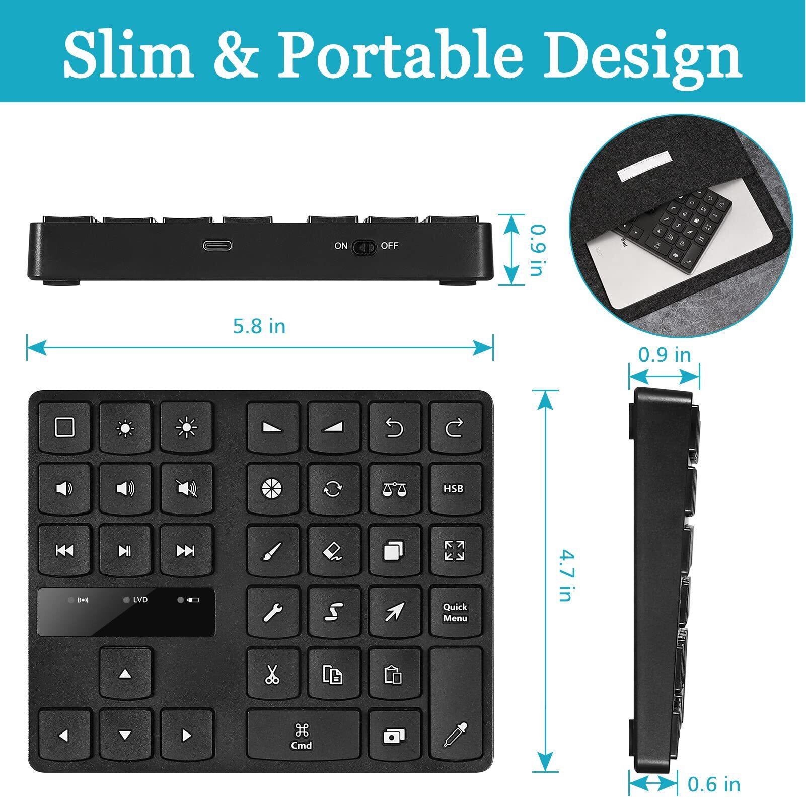 Procreate用ワイヤレスキーパッド、35キー片手ショートカット描画キーパッド、PR、LR、グラフィック描画タブレットなどに対応、タイプC充電式