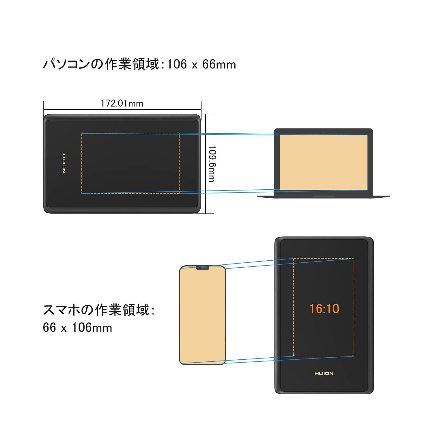 HUION ペンタブレット H420X PC必要なし スマホで使える可能 傾き検知機能 充電不要ペン8192レベル筆圧感度 ペンタブ