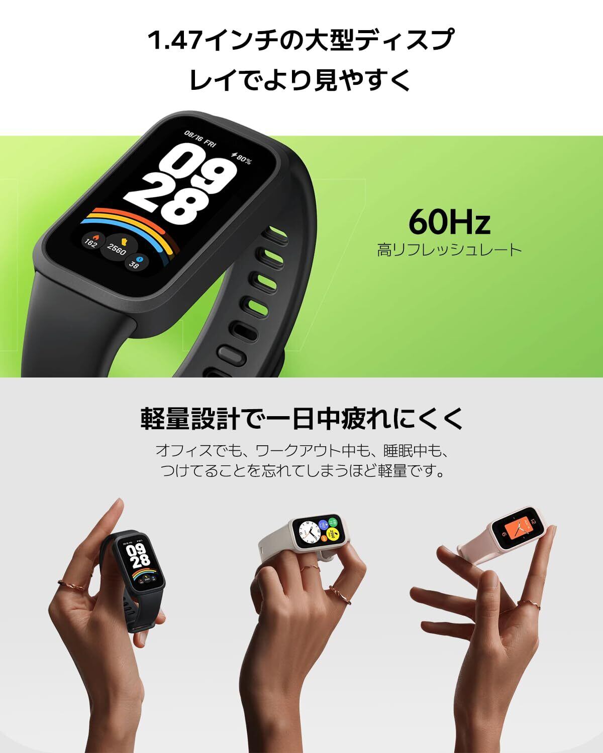 【特価セール】シャオミ(Xiaomi) スマートウォッチ Xiaomi Band 9 Active 18日間連続使用 1.47インチTFTディスプレイ 24時間健康管理 チップ強化 軽量デザイン 交換可能なフレーム iPhone & Android対応 ブラック | SmartLiving+