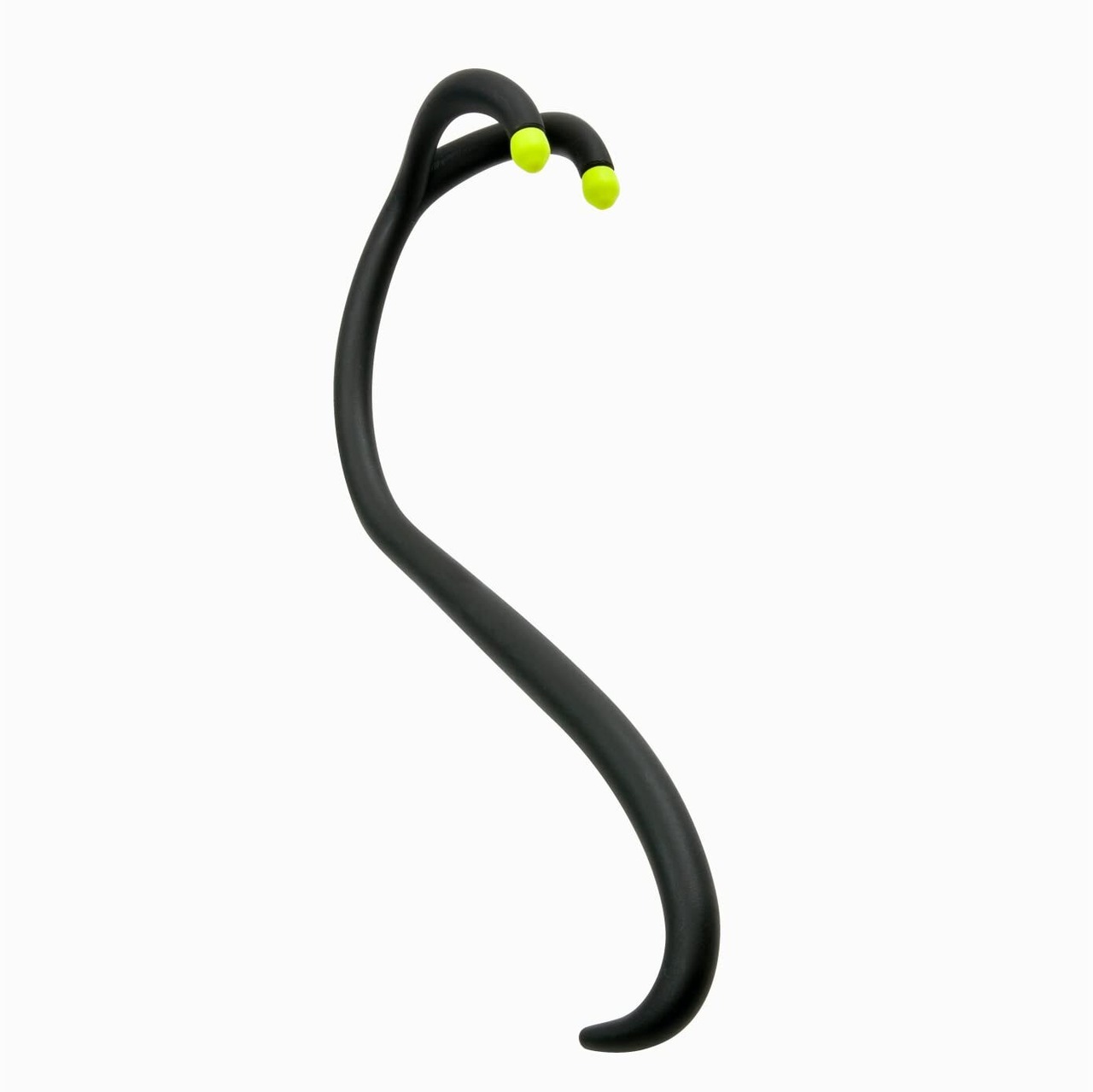 手の届きにくい背中や肩に使いやすいアーチ型。滑りにくいゴムの先端が狙ったツボをピタッっと捉え、しなりが効くから軽く力をかけるだけで深く入ります。