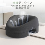 穴が下にもあるのでこもりにくく呼吸がしやすい。長時間のうつ伏せでも疲れにくい人間工学に基づく設計。手前は低くて首にやさしい理想的な角度と高さです。低反発ウレタンがやさしくフィットして顔が痛くなりにくい。カバーは外して洗濯機で洗えます。