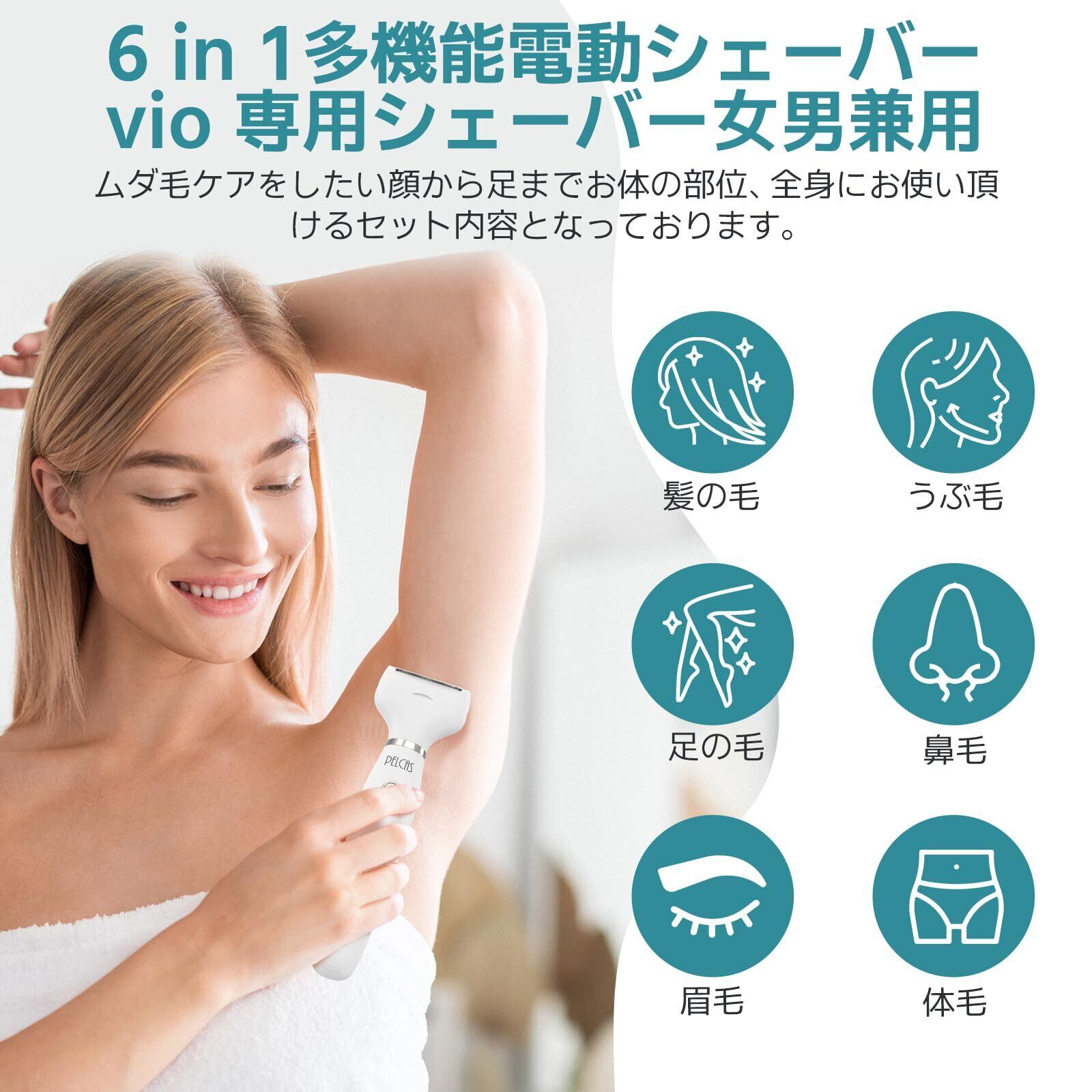 PELCAS 1台6役除毛器 フェリエ VIO専用シェーバー 防水 ドライ剃り レディースシェーバー vioシェーバー 電気シェーバー 女性 2025新型 鼻毛カッター 眉毛シェーバー 多機能 ムダ毛処理 顔 脇 腕 すね毛 ビキニライン 水洗い可能 USB充電式 日本語説明書付き