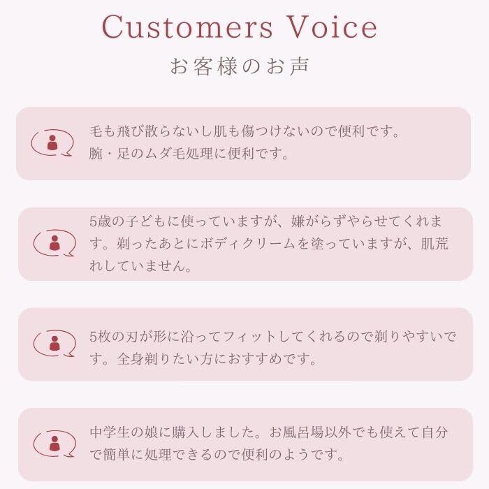 本体サイズ:104×88×60mm 本体重量:178g 材質:ABS+ステンレス鋼+チタン 電源:充電式(リチウムイオン電池) 充電時間:8時間 入力電圧:AC100-240V 50/60Hz 出力電圧:DC5V/1A セット内容:本体、ブラシ、充電コード、収納袋、取扱説明書(書付) 販売元:株式会社Jアライアンス (安全に関するご注意) 〇本製品はムダ毛処理を目的としています。頭髪を刈るなど、それ以外の目的で使用しないでください。〇刃は薄く仕上げてありますので刃部を強く押さえたり、固いものに当てないように注意してください.〇極端に低温または高温の場所、直射日光の当たる湯所、車の中、ほこりの多い場所、液体のかかりやすい場所等には保管しないでください。〇充電コードは必ず本機専用のものをご使用ください。〇乳幼児の手の届くところに保管しないでください。〇肌が敏感な方や炎症、吹出物など肌に異常がある場合は、使用しないでください。〇使用後、皮膚に異常があらわれた場合は使用を中止し、皮膚科医に相談してください。〇本体は防水加工されておりますが、水洗いしたり、水や液体に浸けたりしないでください。 〇画像と実物では色味が異なる場合があります。あらかじめこ了承ください。〇製品にはリチウムイオン電池が使用されております。製品廃棄時には、お住まいの自治体の指示にしたがって処分するようにしてください。