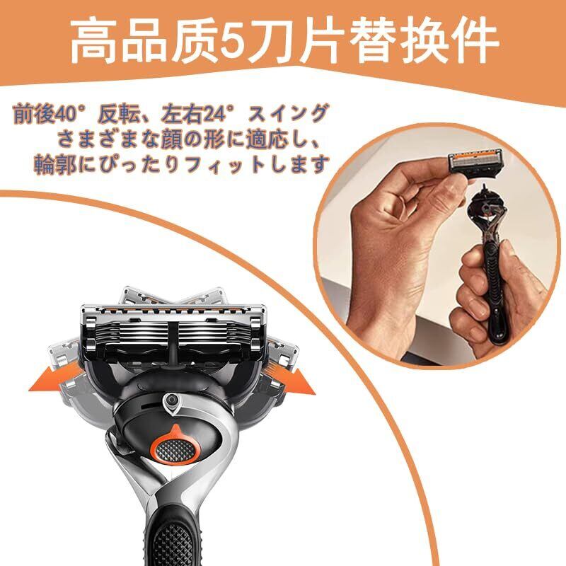 互換性抜群のひげそり替刃:ジレット プロシールド、プログライド、フュージョンなどの5枚刃カミソリに対応する高品質な髭剃り替刃