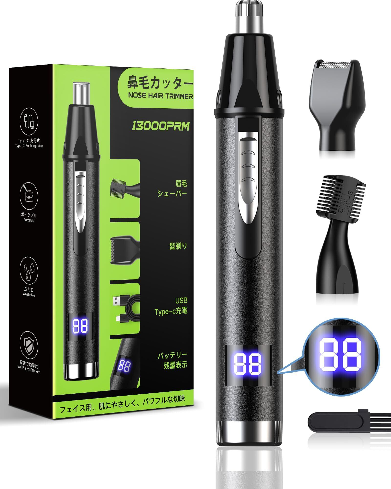 鼻毛カッター メンズ 【1台3役・LCD画面・USB-C充電式】 眉毛シェーバー 鼻ケアカッター 電動 エチケットカッター まゆけシェーバー メンズ レディース フェイスシェーバー ノーズトリマー 耳毛カッター 耳げカッター 鼻毛切り そり 顔/髭剃り 産毛/ムダ毛/無駄毛処理 電気シェーバー 水洗い可 男女兼用 低騒音