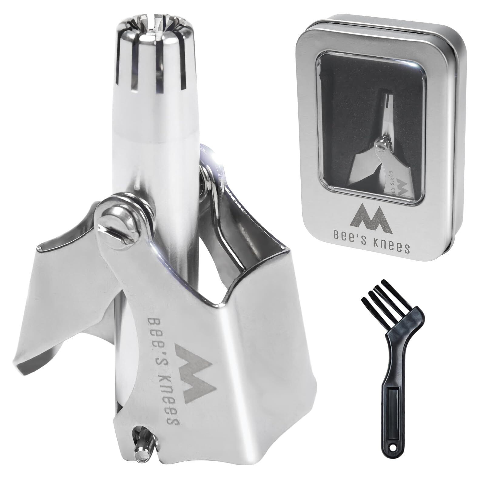 【トータルビューティアドバイザー監修】鼻毛カッター 手動式 エチケットカッター なはげ切り 水洗い可能 鼻毛処理 回転式 小型 電池不要 安全性 12枚立体ブレード レディース メンズ お手入れ掃除ブラシ付 収納ケース付き【Bee‘s Knees】
