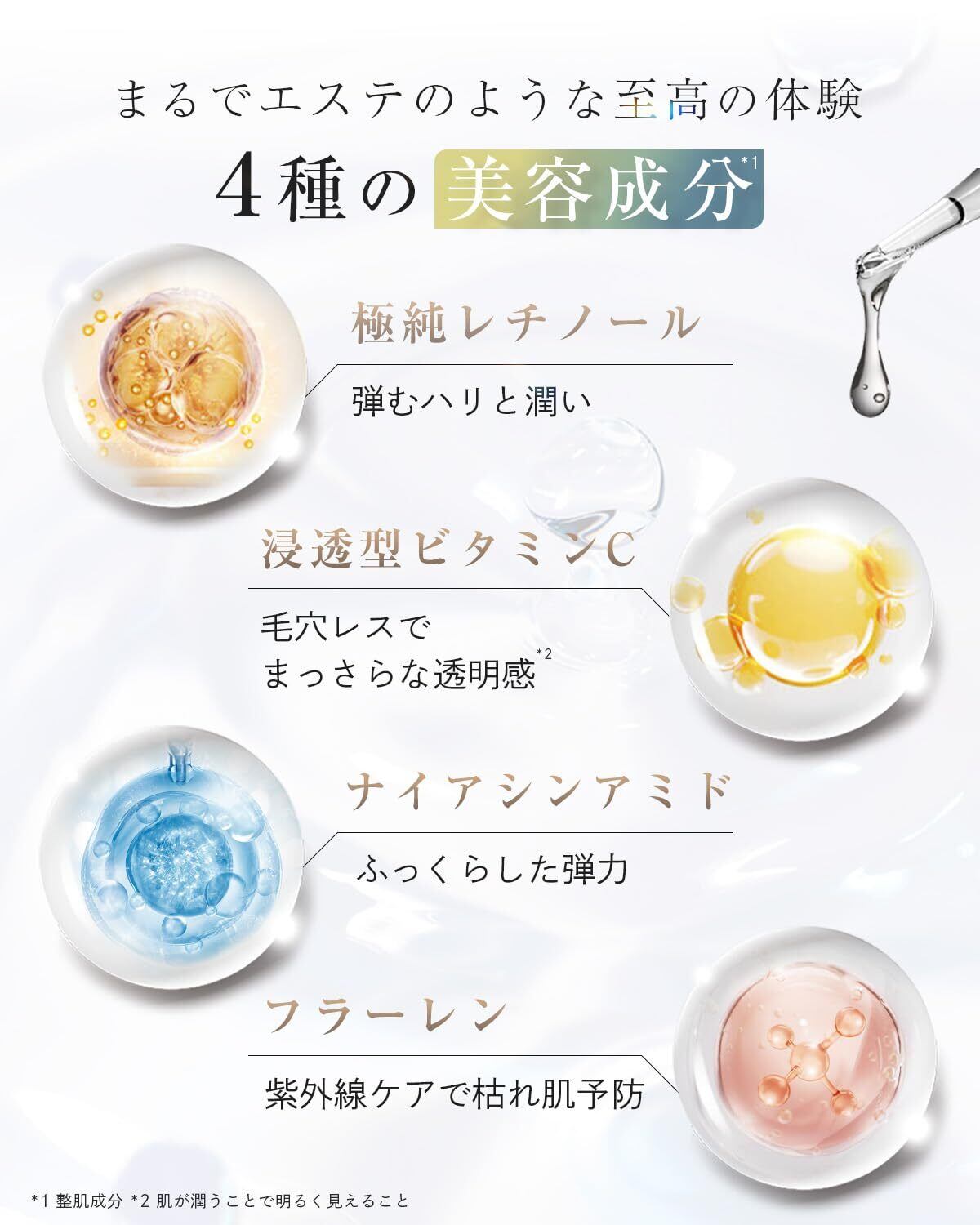 ✨【レチノールで肌を引き締め毛穴ケア】注目成分レチノールの力で、ゆるんだ印象の肌をキュッと引き締め。くすみ(乾燥による)を払拭し、ハリと弾力のあるツヤ肌に(整肌保湿)