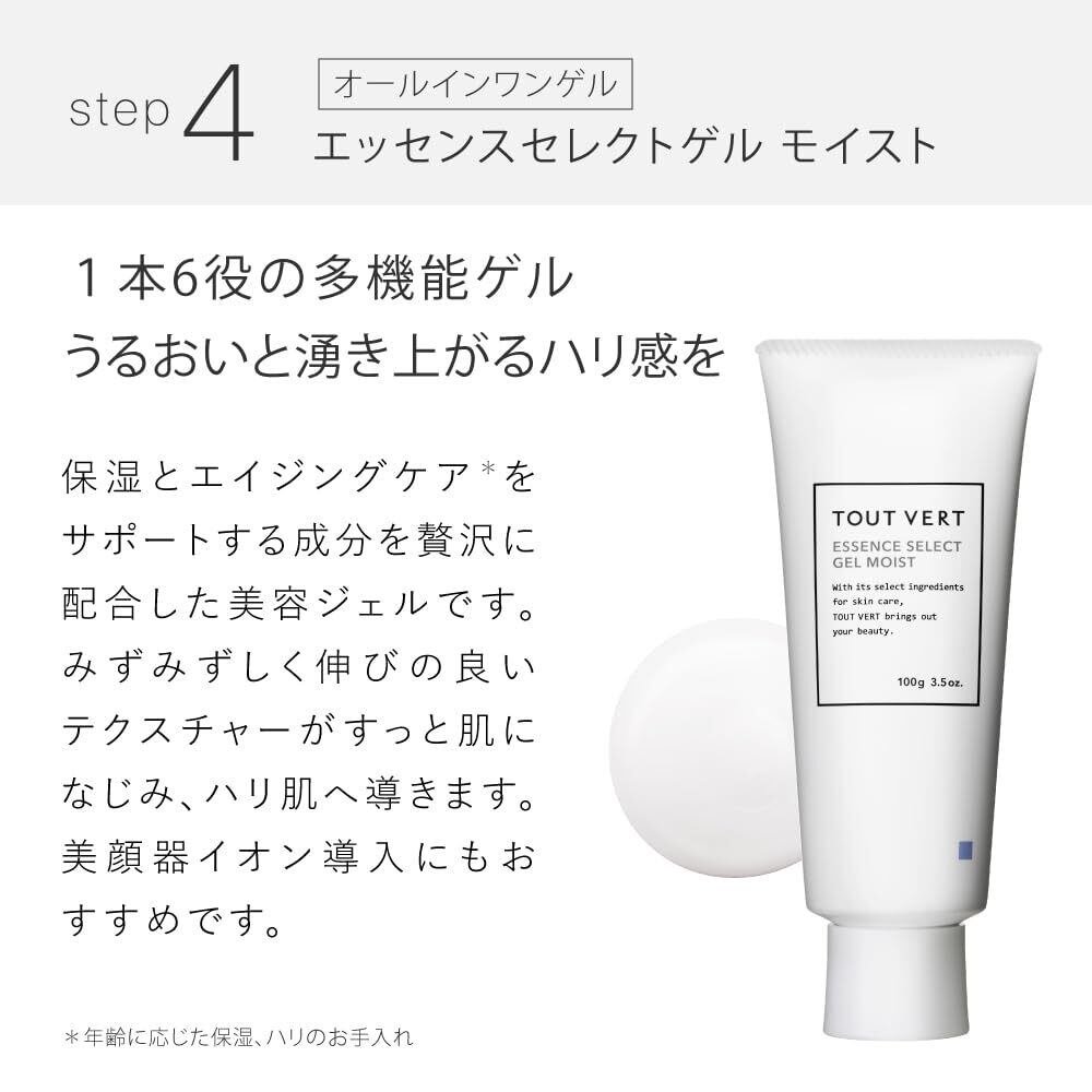 【エッセンスセレクトゲル モイスト】コラーゲンをサポートする高濃度6種のペプチドに加えて、5種のヒト型セラミドなどの保湿成分を贅沢に配合したオールインワンゲルです。乾燥や荒れのない弾力のあるハリ肌へと導きます。