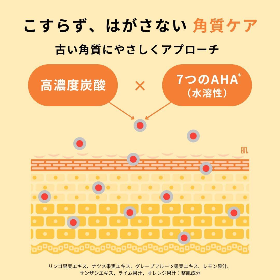 【7種のAHA*(フルーツ酸)】*リンゴ果実エキス、ナツメ果実エキス、グレープフルーツ果実エキス、レモン果汁、サンザシエキス、ライム果汁、オレンジ果汁(整肌成分)