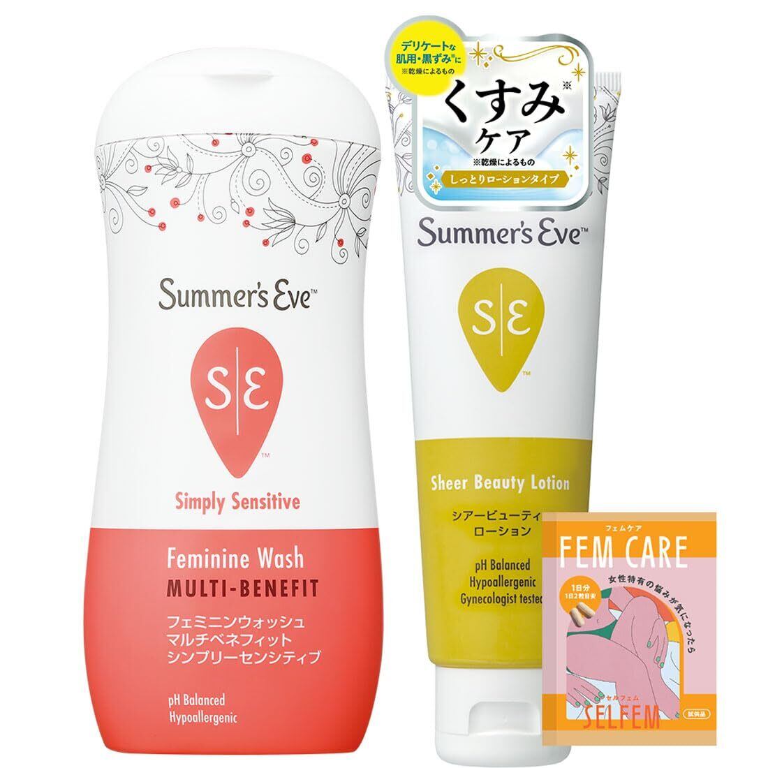 サマーズイブ 【メーカー公式 お試しフェムケアサプリ付】 デリケートゾーン 保湿 集中ケア セット シンプリーセンシティブ ウォッシュ 保湿ローション デリケートゾーン 保湿ジェル デリケートケア Summer's Eve ピンク 黄色 VIO脱毛 保湿ローション クリーム PILLBOX