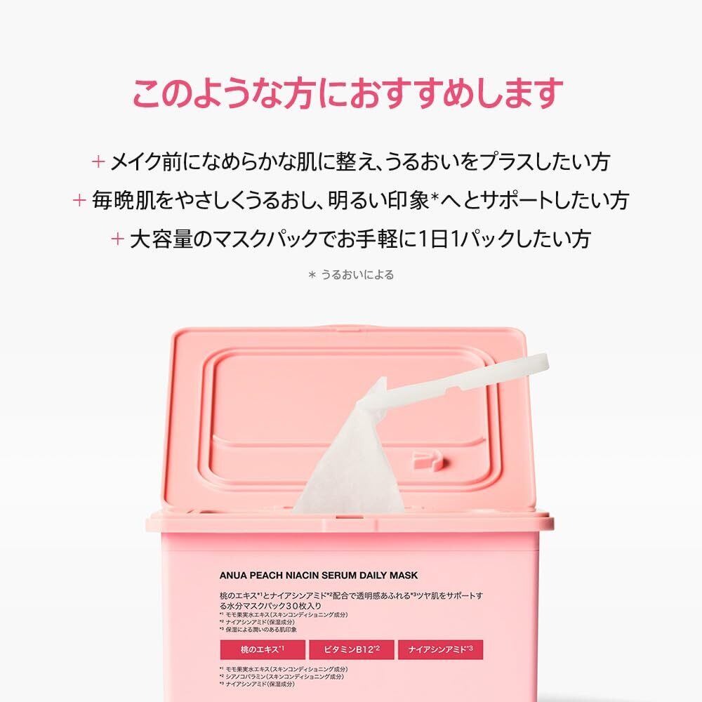 【新着商品】ANUA(アヌア)桃ナイアシンセラムデイリーマスクパック30枚入り フェイスパック 水光肌 うるツヤ 水分保湿 キメ 角質 乾燥肌 混合肌 ディリーパック peach niacin serum daily mask pack スキンケア【公式・正規品】 | SmartLiving+