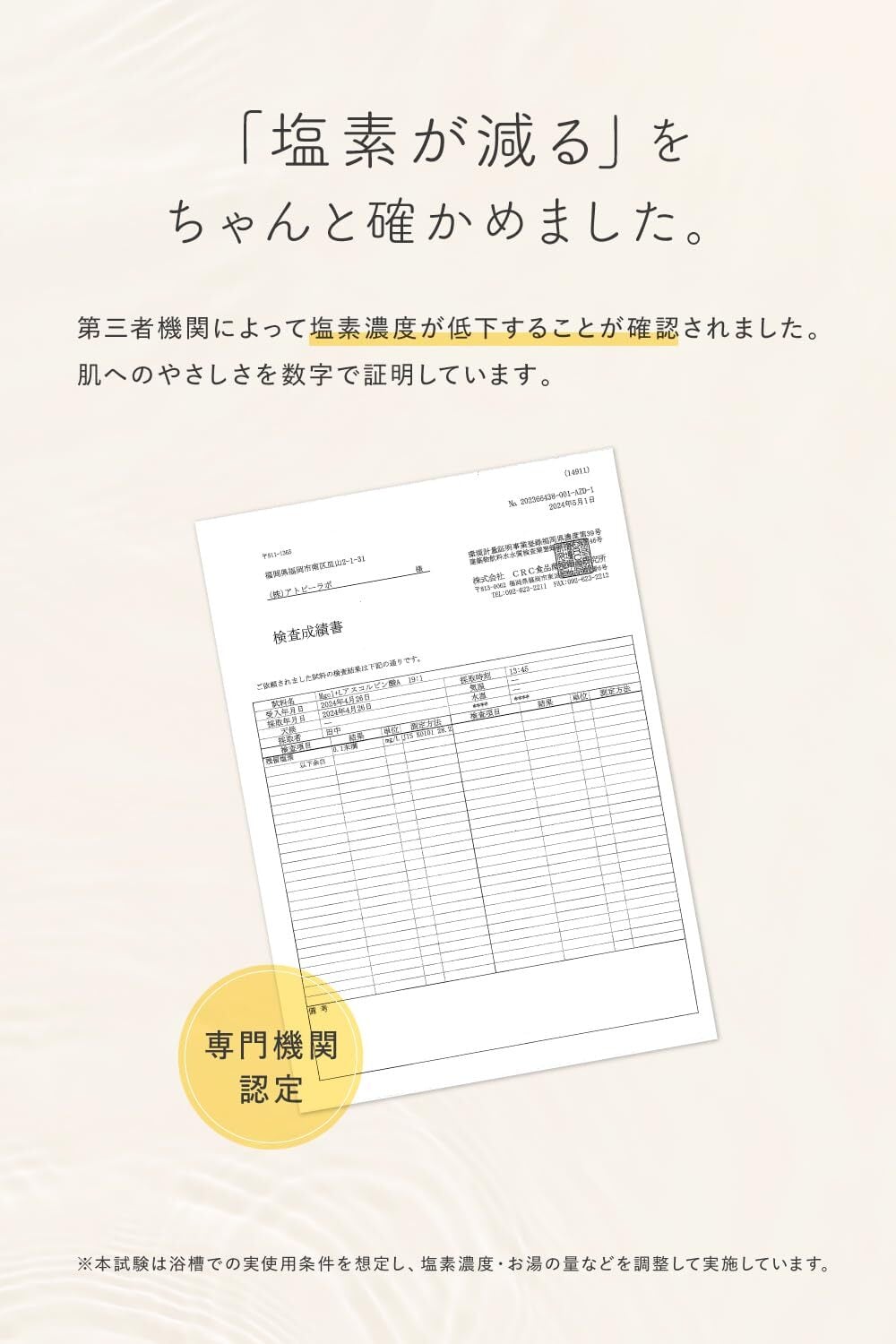 商品特長 肌に優しい成分で、塩素から肌を守れること