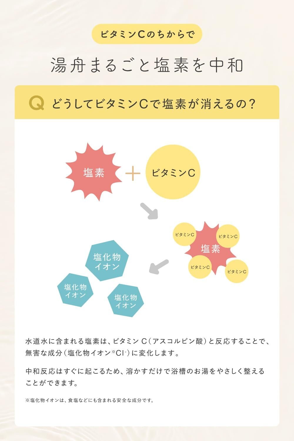 ・お肌に優しい天然由来成分100%(ビタミンC、塩化マグネシウム) ・風呂釜痛めない、追い焚き可能、洗濯水に使える ・毎日スプーン1杯で、しっかり30日分 ・サラッとすぐ溶ける粉末タイプ ・ビタミンCで塩素除去して、塩化マグネシウムで肌のバリア機能を整える