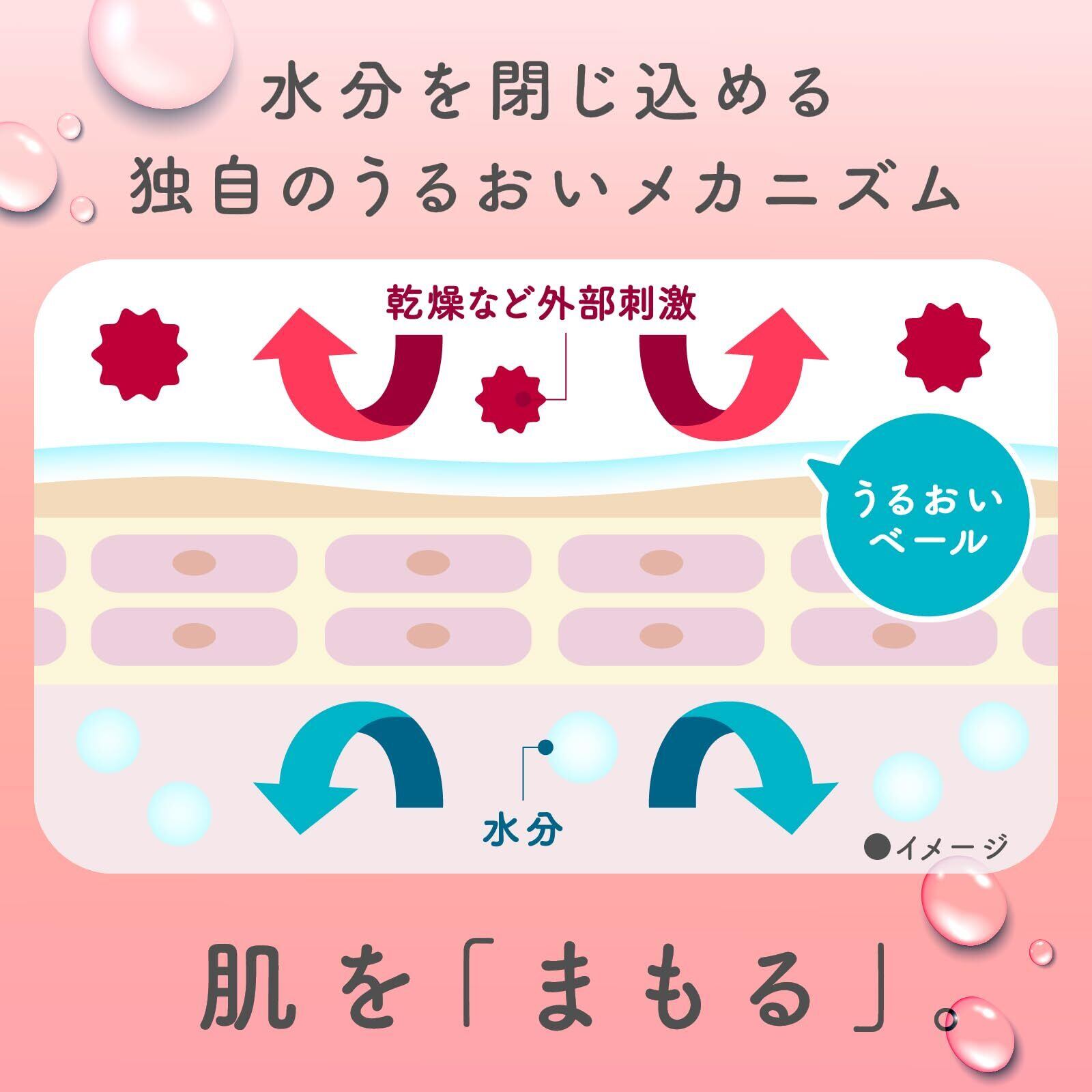 角層深くまで浸透する3種の保湿成分とうるおいベール成分が、肌をやさしく包み潤いを閉じ込めます。