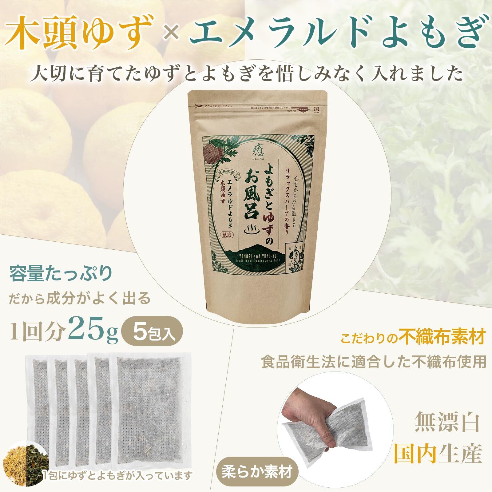 よもぎとゆずのお風呂 25g×5包入 エメラルドよもぎ 木頭ゆず 入浴剤 ゆず湯 よもぎ湯 無農薬 国産 徳島 発汗 夏 ギフト
