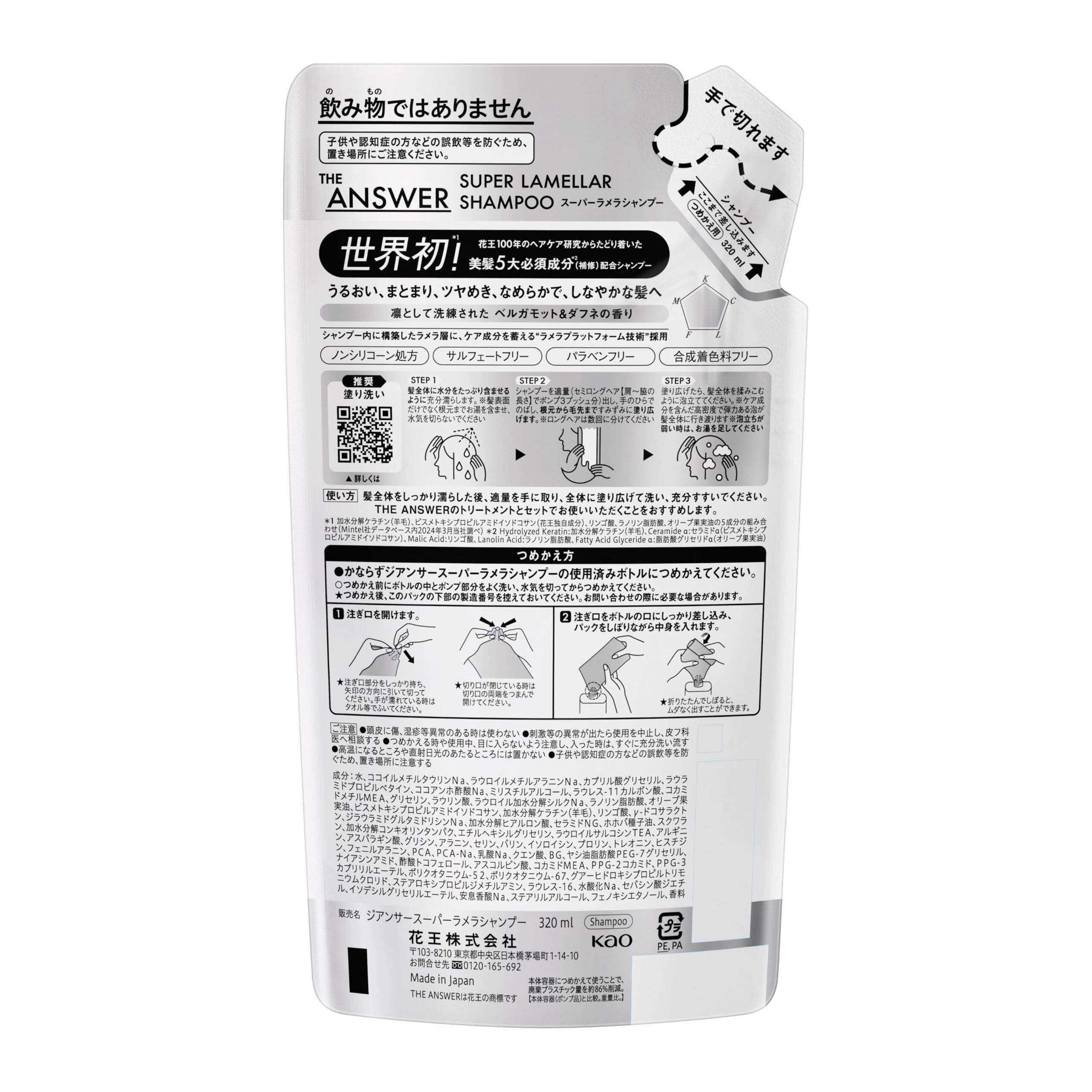 【新着商品】【THE ANSWER】 ジアンサー スーパーラメラシャンプー 詰め替え用 320ml ベルガモット&ダフネの香り 美髪5大必須成分配合 髪質改善 くせ毛 ノンシリコーン処方 花王 | SmartLiving+