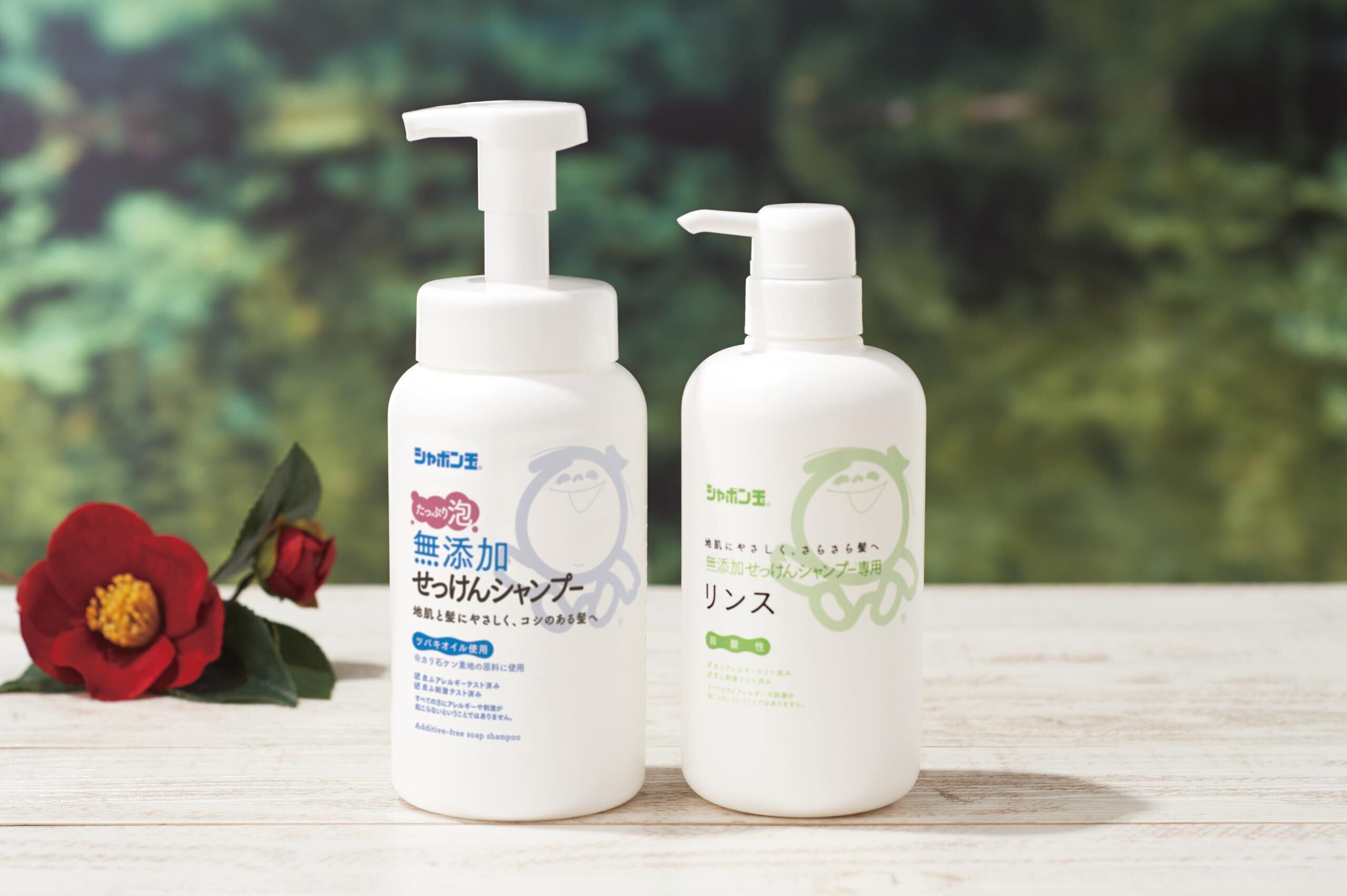 ・必ずシャボン玉無添加せっけんシャンプー専用リンスのボトルにつめかえてください。
