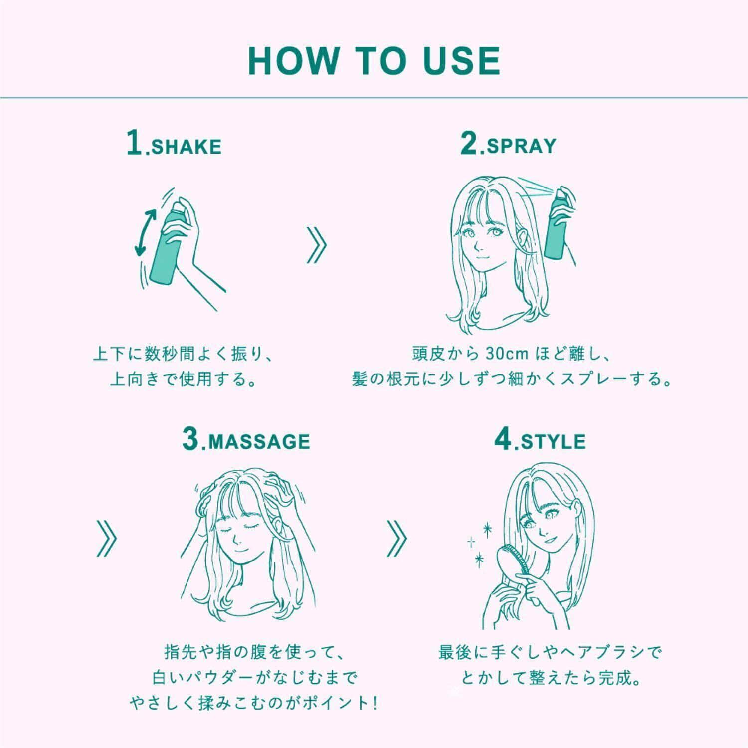 ●(2)頭皮から30cmほど離し、髪の根元に少しずつ細かくスプレーする。