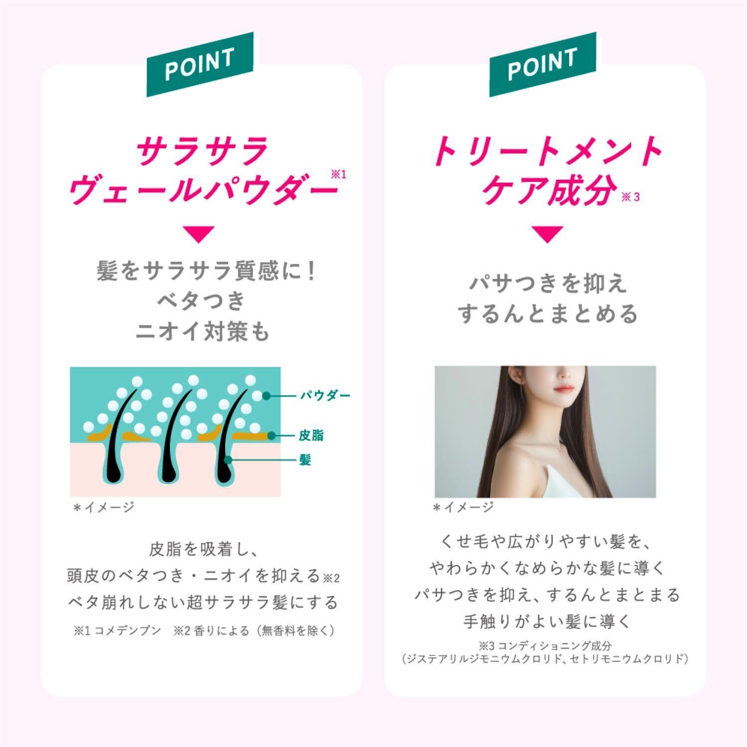 ●スタイリング前に髪の根元や髪全体にスプレーしてブラッシングすれば、サラサラヴェールパウダー(※1)が髪をサラサラにコーティング。