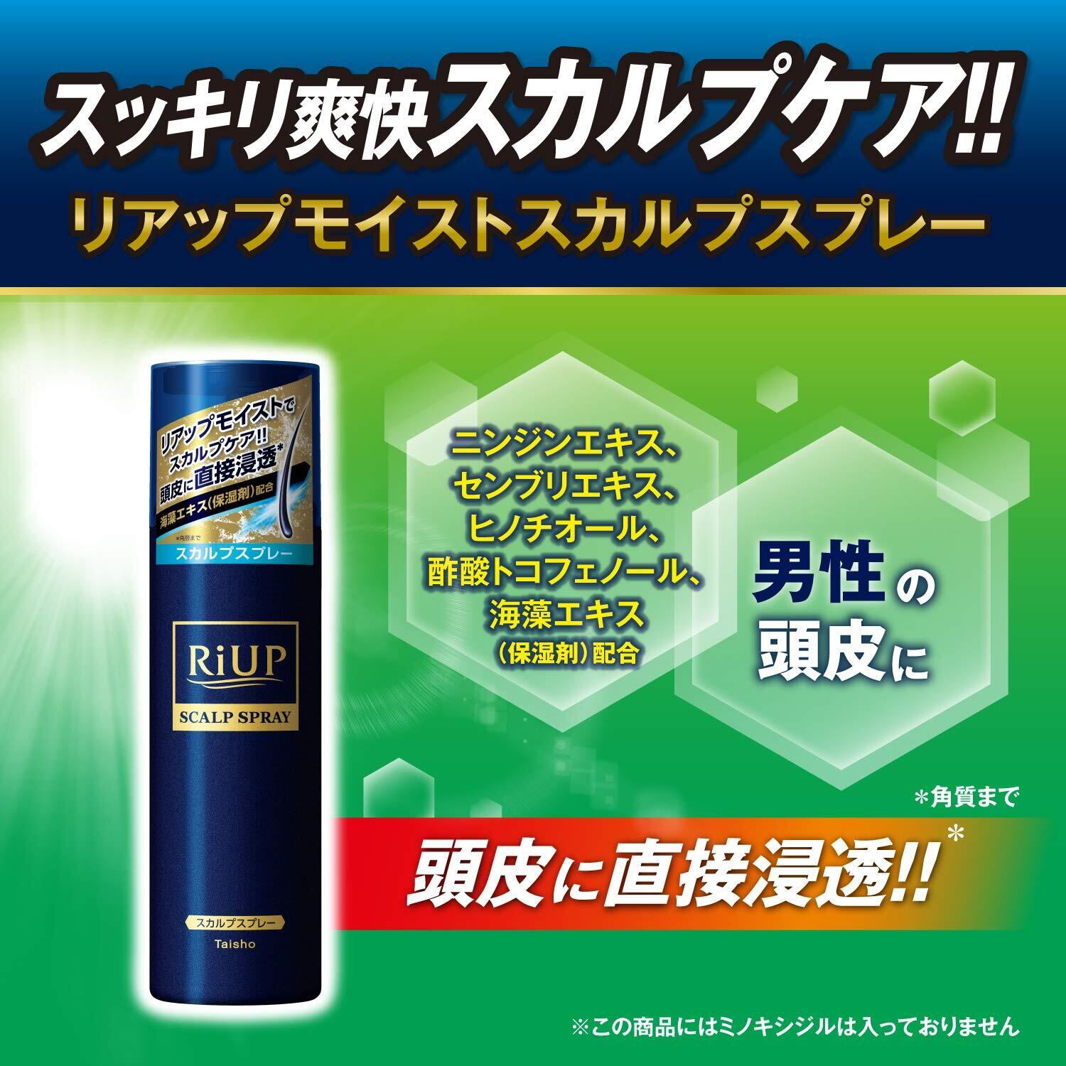 ●リアップモイストスカルプスプレーは、保湿剤の海藻エキス、ニンジンエキス、センブリエキスを配合しております。