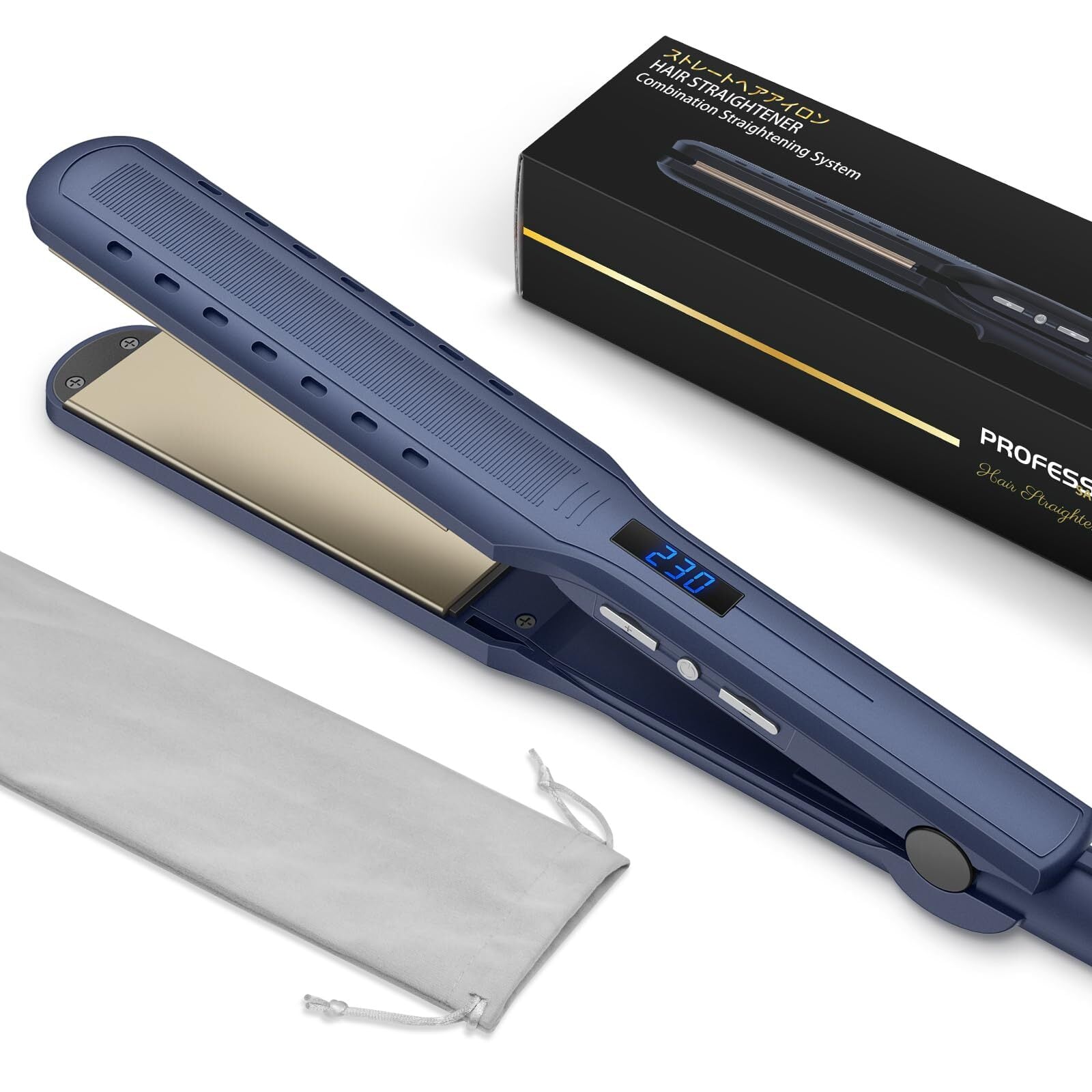 ストレート ヘアアイロン プロ仕様 【最大温度設定 230℃】 18段階温度調節 ストレート & カール 2way ヘアストレートナー 髪サロン ヘアケア 美容家電 360度回転コード 軽量 ポーチ付き 35mm プレート セラミック チタニウム コーティング ヘアスタイリングアイロン レディース 彼女 誕生日 プレゼント