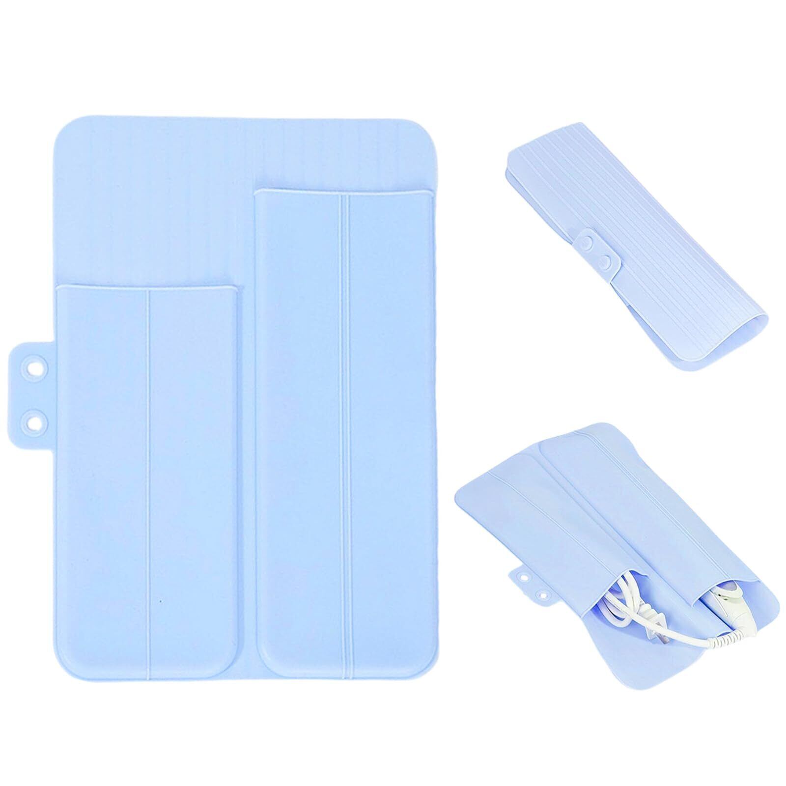 Coollooda ヘアアイロンケース ヘアアイロンポーチ カバーアイロンケース ヘアアイロンマット 29x20cm シリコン製 耐熱250度 ポケット付き 持ち運び 使ってスグ 便利グッズ収納 可愛い フラットアイロン用 ヘアアイロン用 ヘアスタイリングツール 家 出張中 旅行(青)