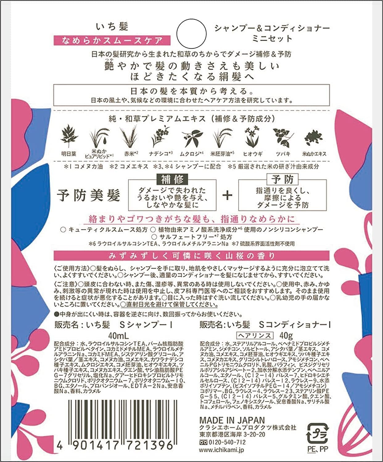【在庫セール】【トラベルセット】クラシエ いち髪 シャンプーコンディショナーミニセット(40mL+40g)+ナイーブ ボディソープ ミニ(80mL)旅行用 携帯に便利 トラベルサイズ (なめらかスムースケア) | SmartLiving+