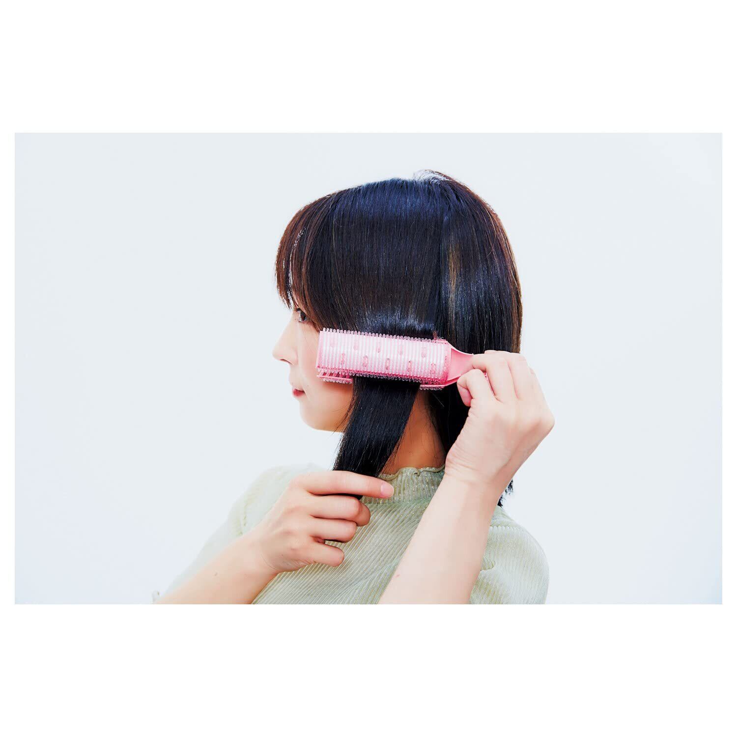 ヘアカーラーの先端を髪の毛に挟み込み、カーラーを巻き付けるだけで外ハネヘアスタイルが作れます。