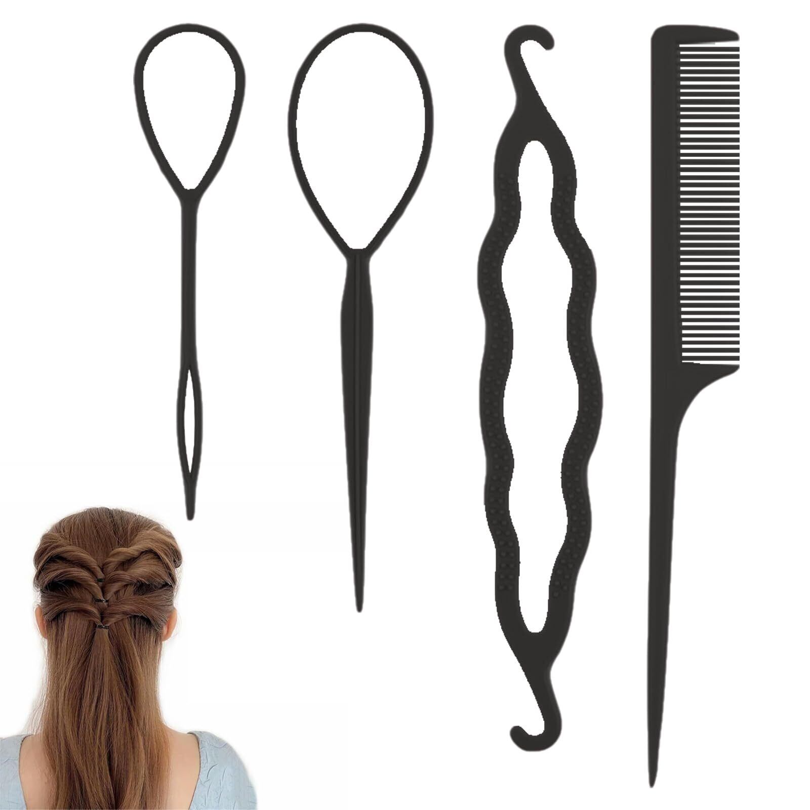 BLOOPIC ヘアアレンジスティック くるりんぱ スティック (4本セット) ヘアブレイディングキット まとめ髪スティック ヘアスタイリングツール 簡単ヘアアレンジ ィック ヘアコーム お団子ヘア 女性のヘアスタイリングツール (ブラック)