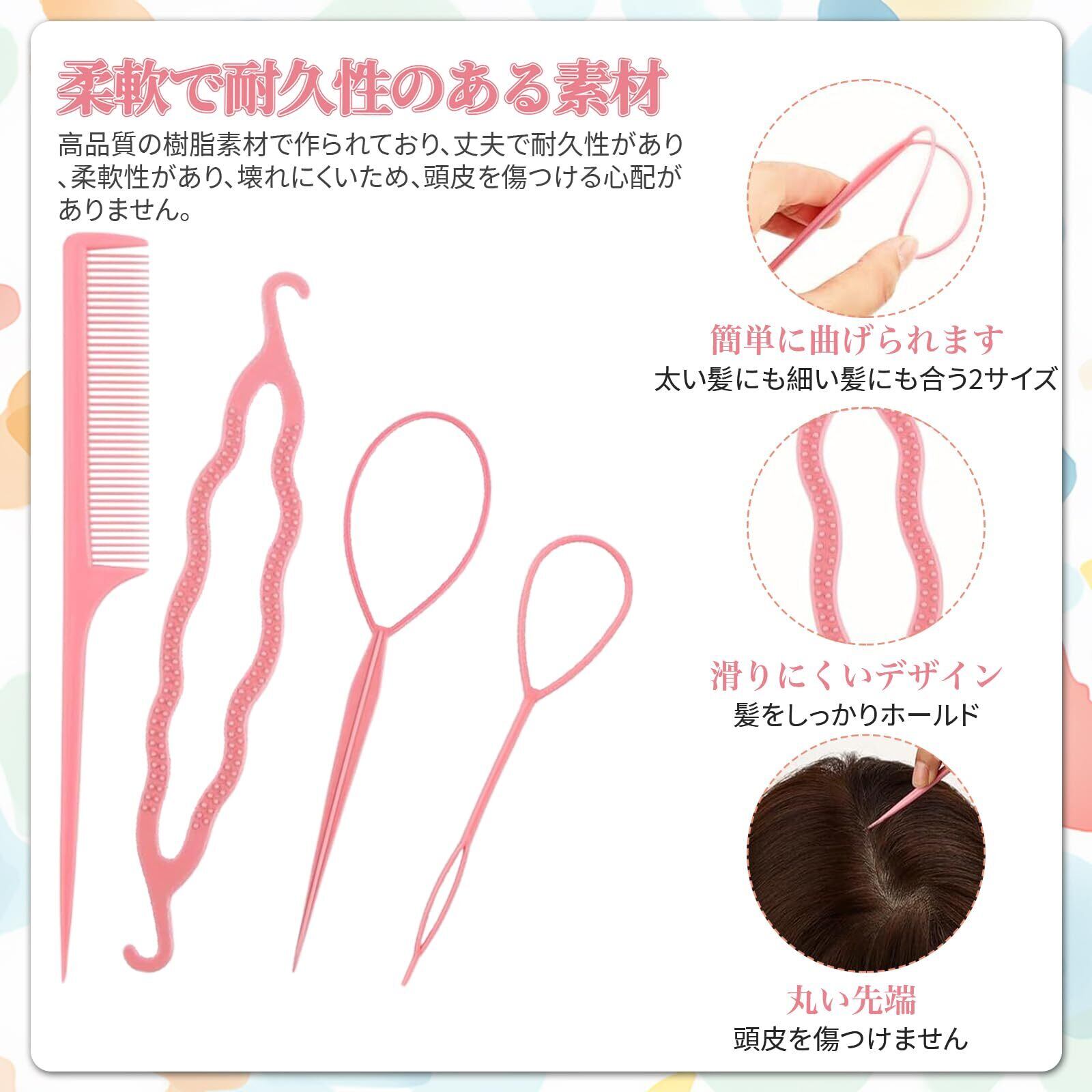 【実用的な理髪セット】4種類の理髪ツールがあり、さまざまなヘアスタイルのニーズを満たすのに十分な量と種類があります。くるりんぱやまとめ髪など、簡単ヘアアレンジが誰でもすぐに楽しめます。