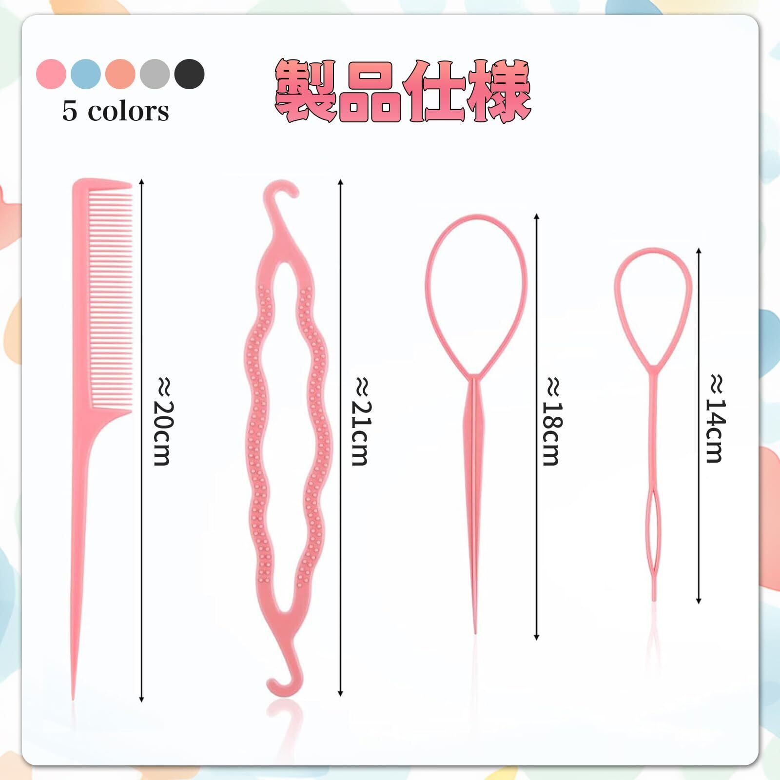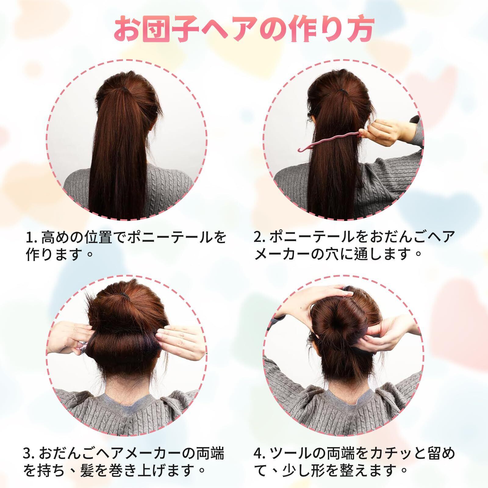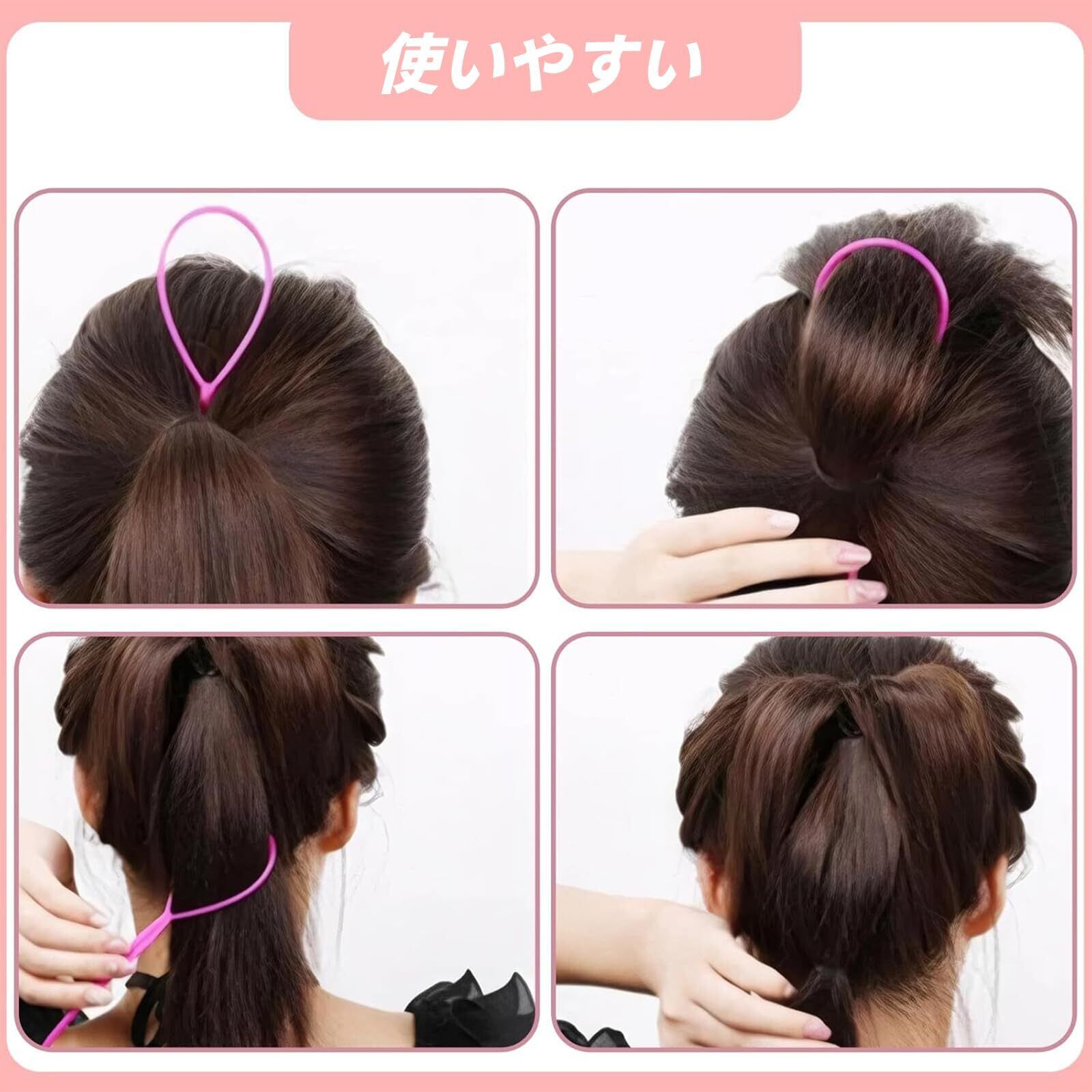【幅広い用途】:ヘアアレンジ全般に対応。くるりんぱ、編み込み、まとめ髪、お団子ヘアなど様々なスタイルを簡単に作成可能。忙しい朝の時短やセルフヘアセットに最適です。
