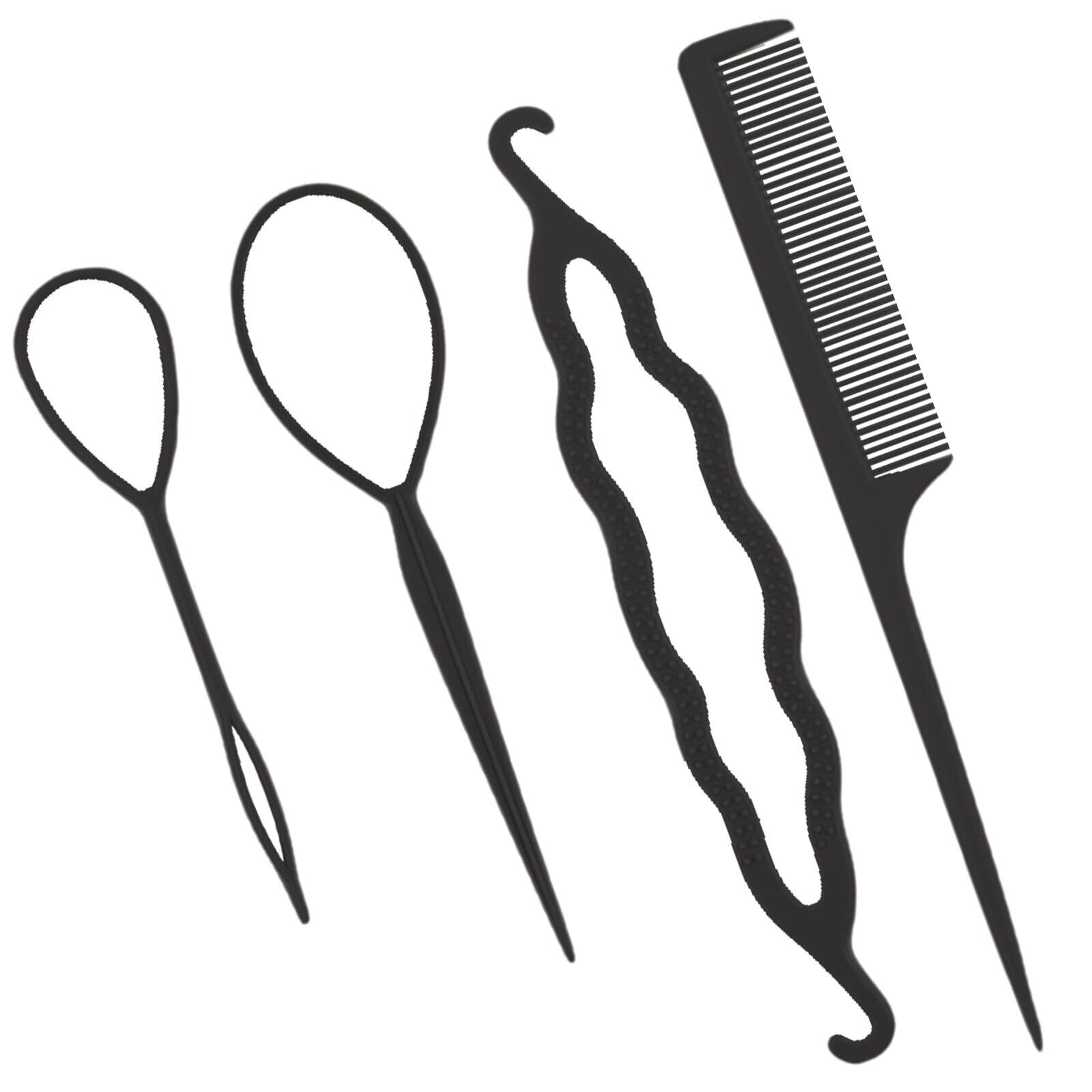 Meltryllis ヘアアレンジスティック くるりんぱ スティック ヘアブレイディングキット ヘアセットツール 簡単ヘアアレンジ まとめ髪スティック ィック ヘアコーム お団子ヘア 女性のヘアスタイリングツール (4本セット ブラック)